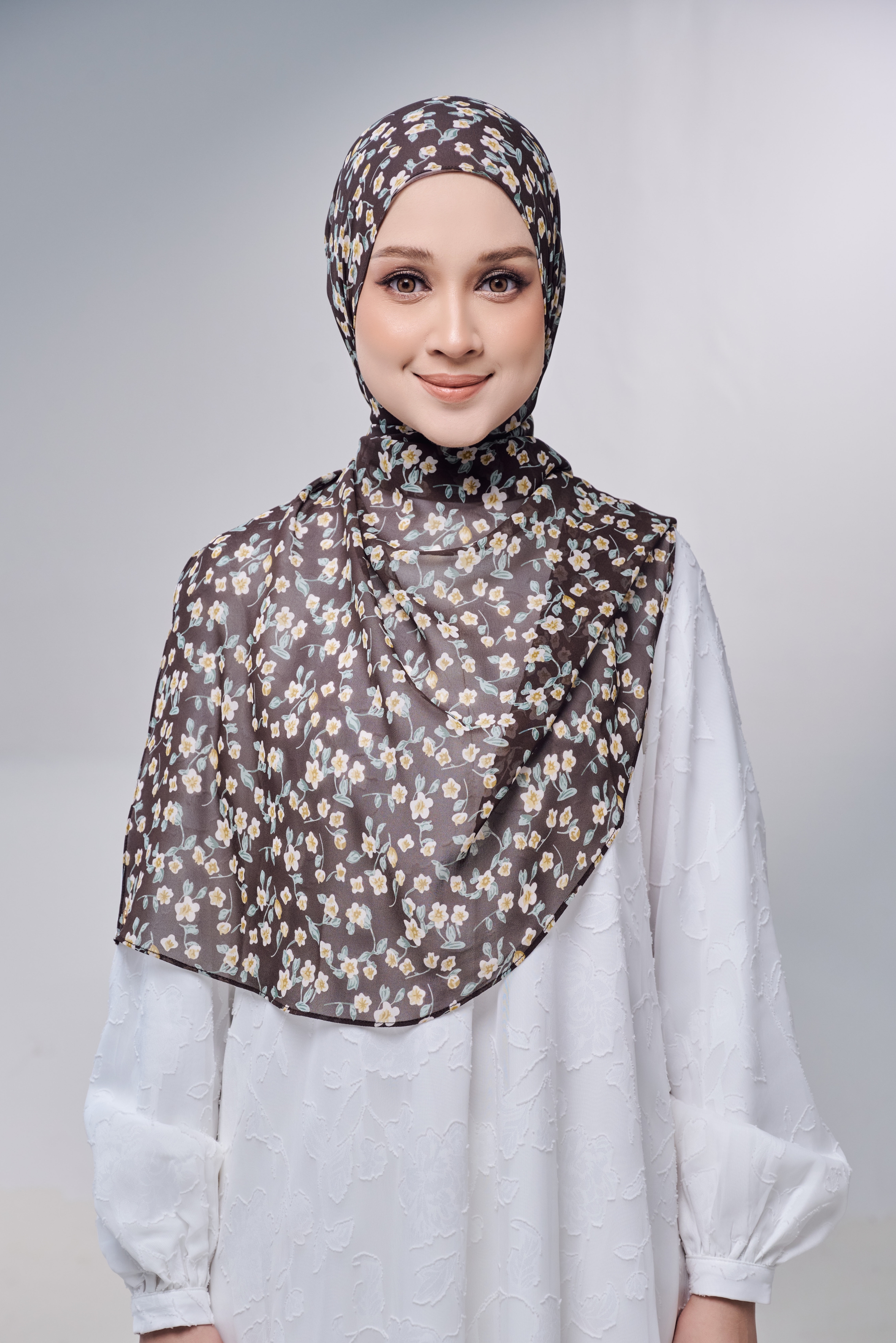Diperbuat daripada chiffon printed berkualiti tinggi, teksturnya ringan dan flowy, memberikan jatuhan yang cantik secara natural. Direka untuk wanita moden yang menghargai gaya yang effortless - kemas  tanpa perlu usaha berlebihan.