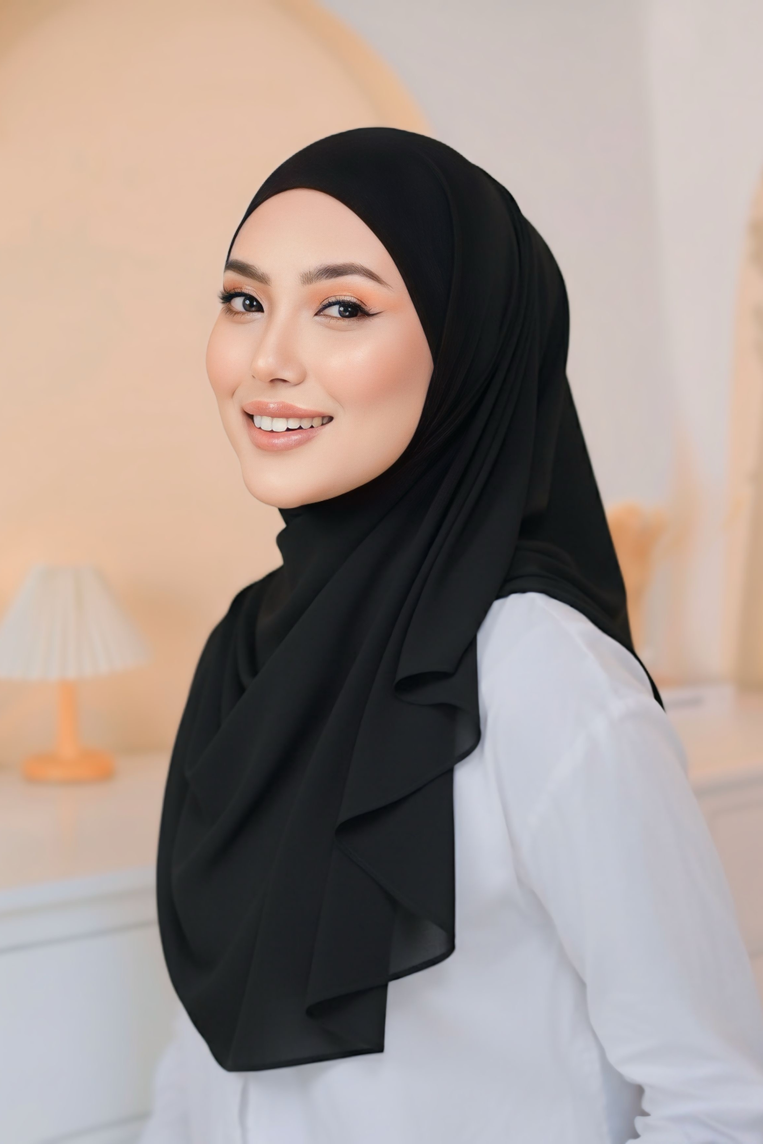 • Premium Chiffon Knot. Lembut, breathable & mudah dibentuk. Sesuai dipakai lama tanpa rasa rimas.