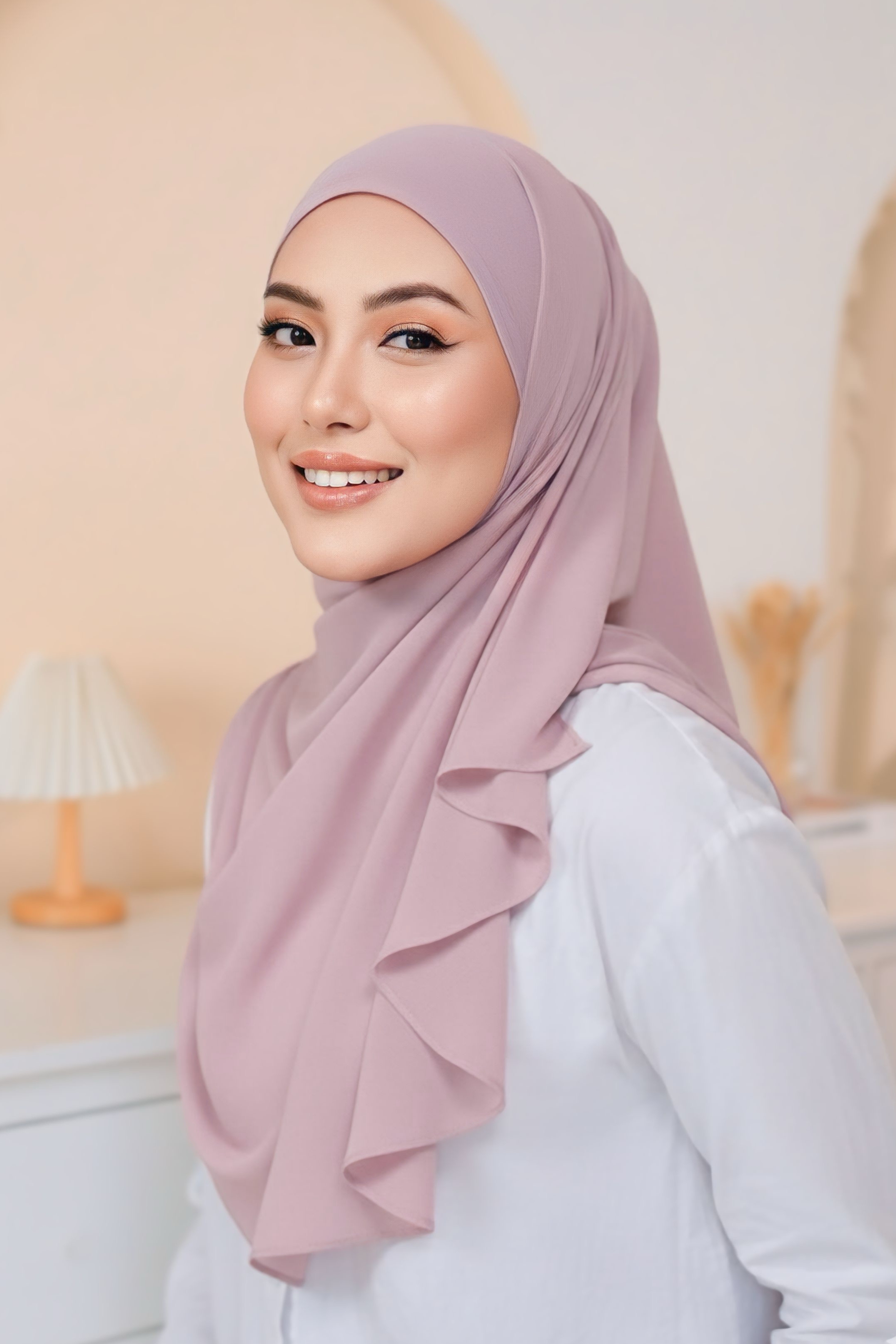 - Premium Chiffon Knot. Lembut, breathable & mudah dibentuk. Sesuai dipakai lama tanpa rasa rimas.
