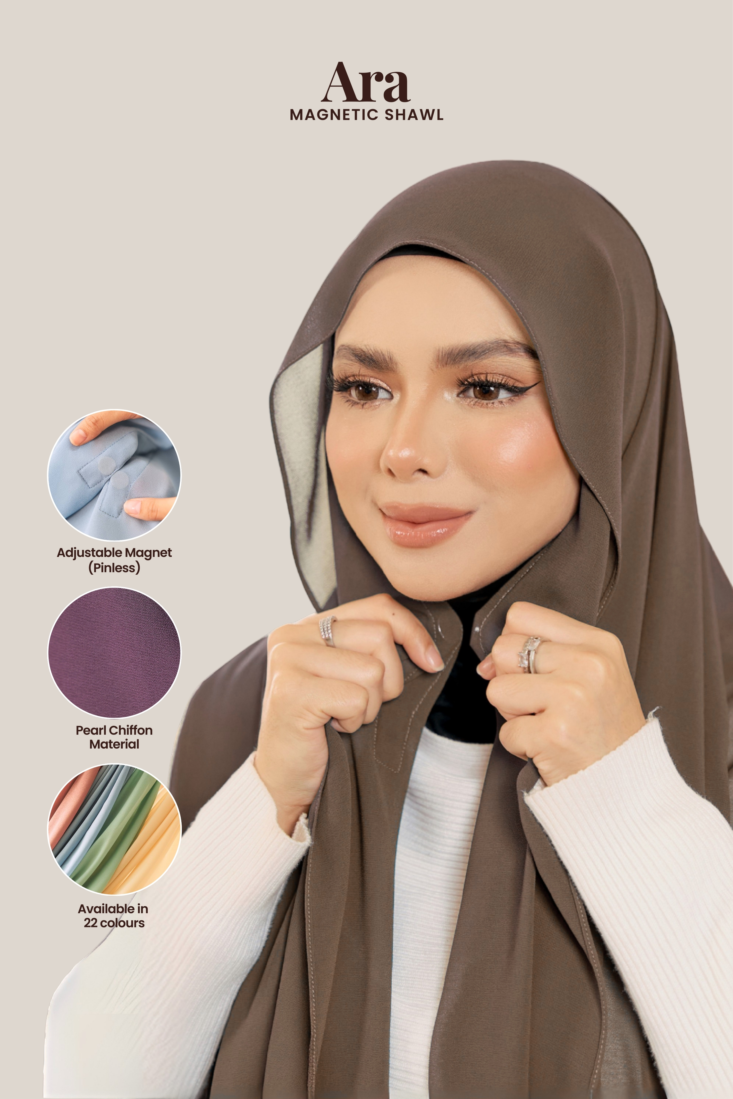 A magnetic shawl is a long scarf with hidden magnets that keep it securely in place without the need to tie or adjust. It's easy to wear and stays secure throughout the day. Each shawl contains two magnetic pockets, which can be adjusted to fit your face size.