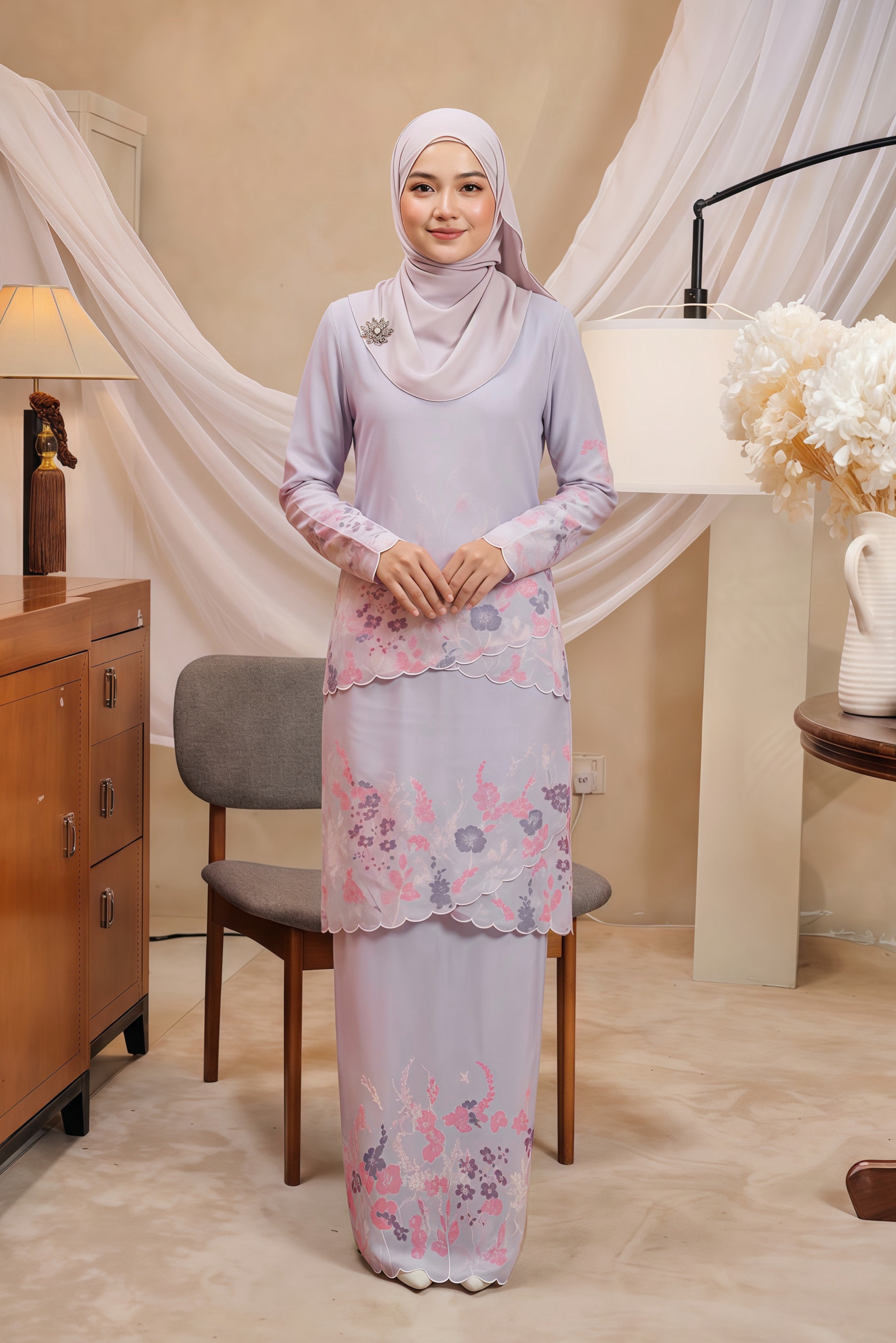 A luxuriously redefined kurung silhouette—where tradition meets sophistication