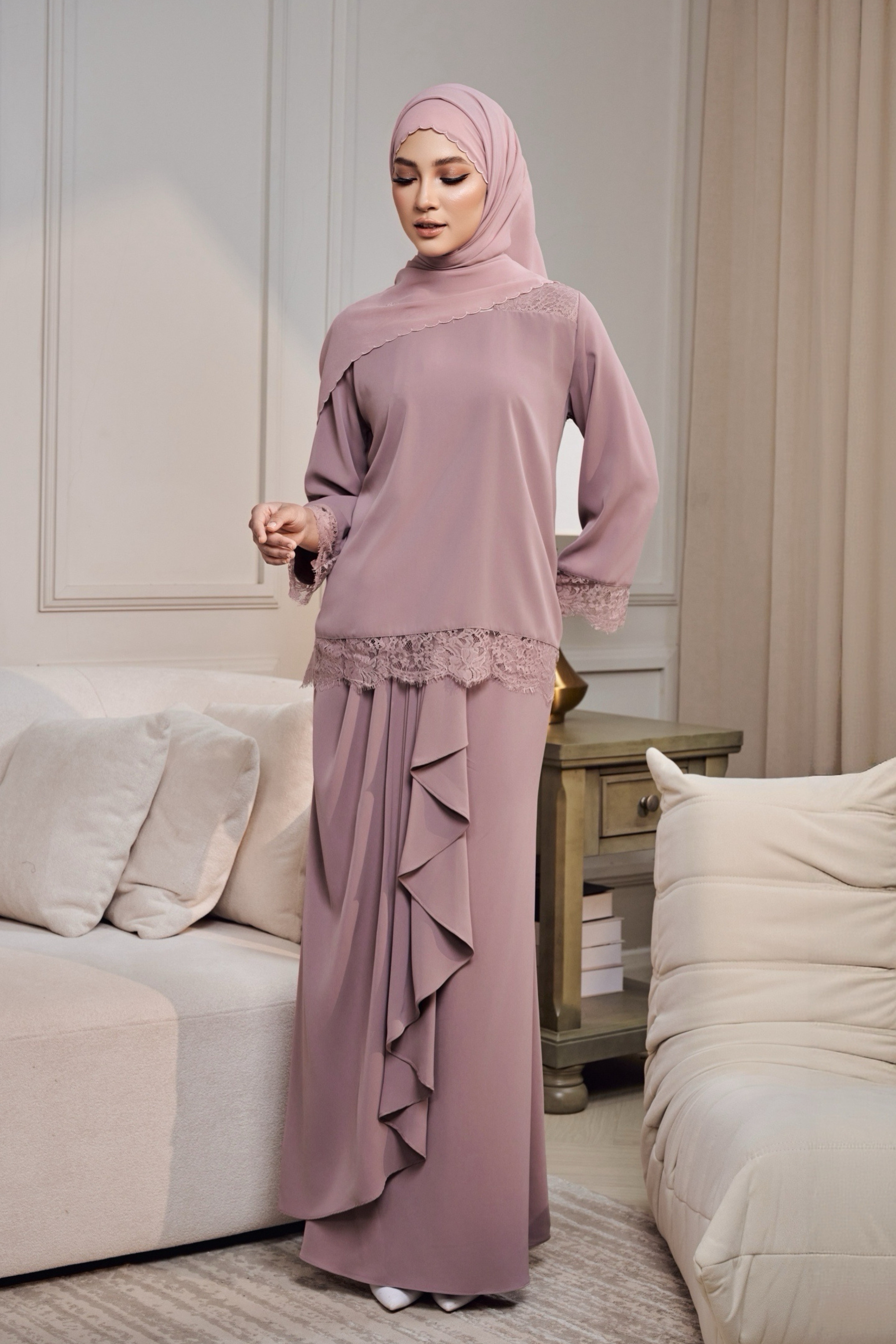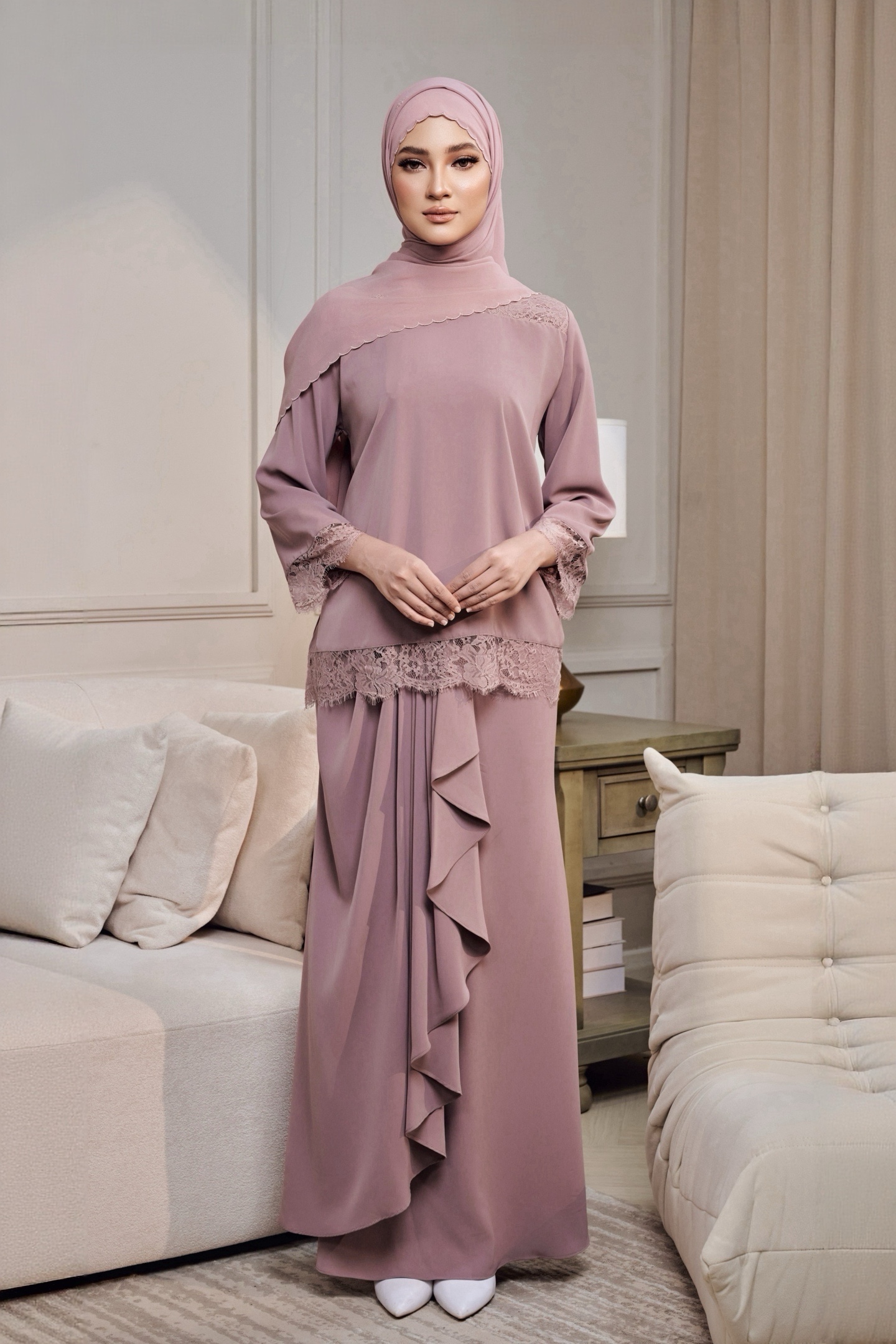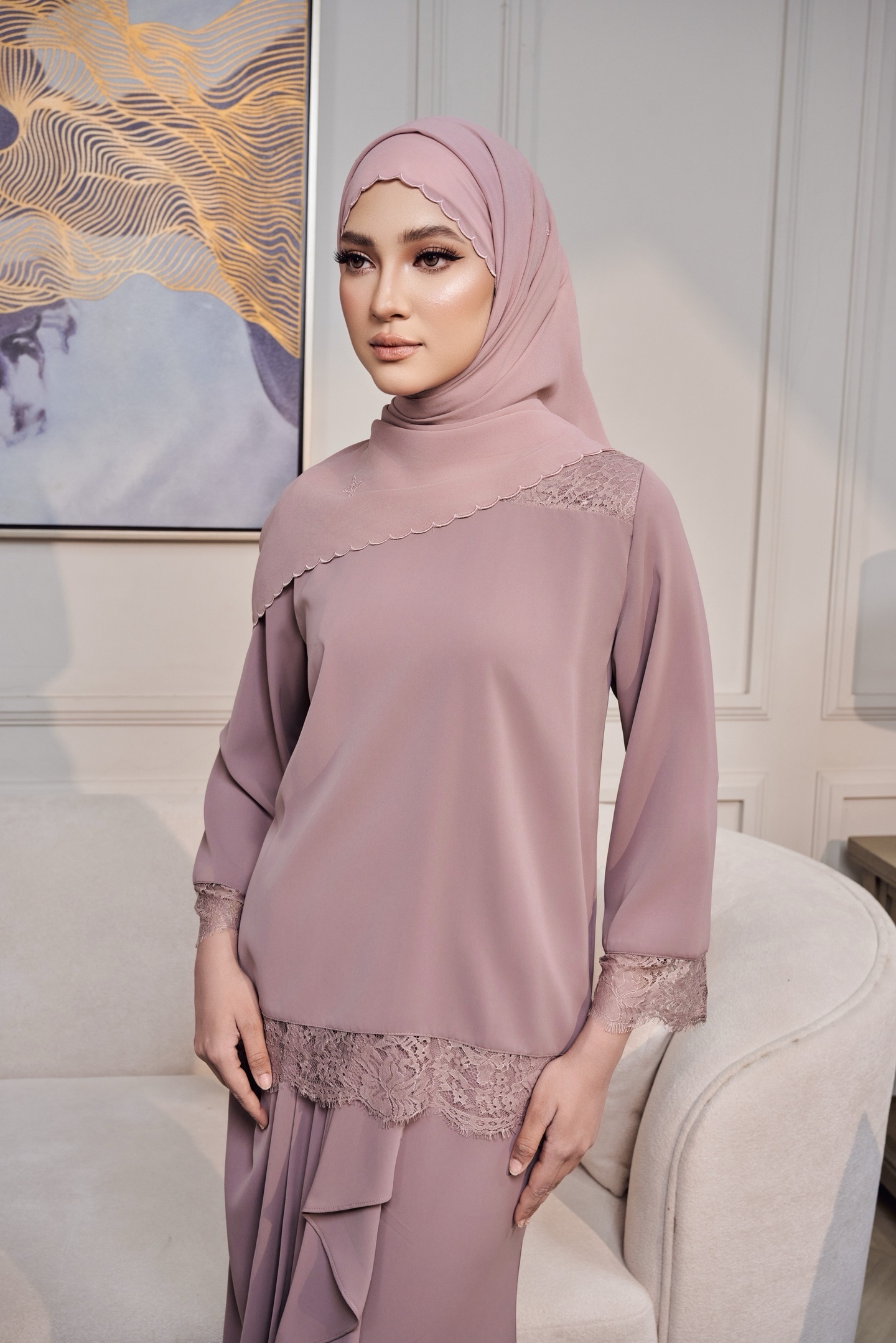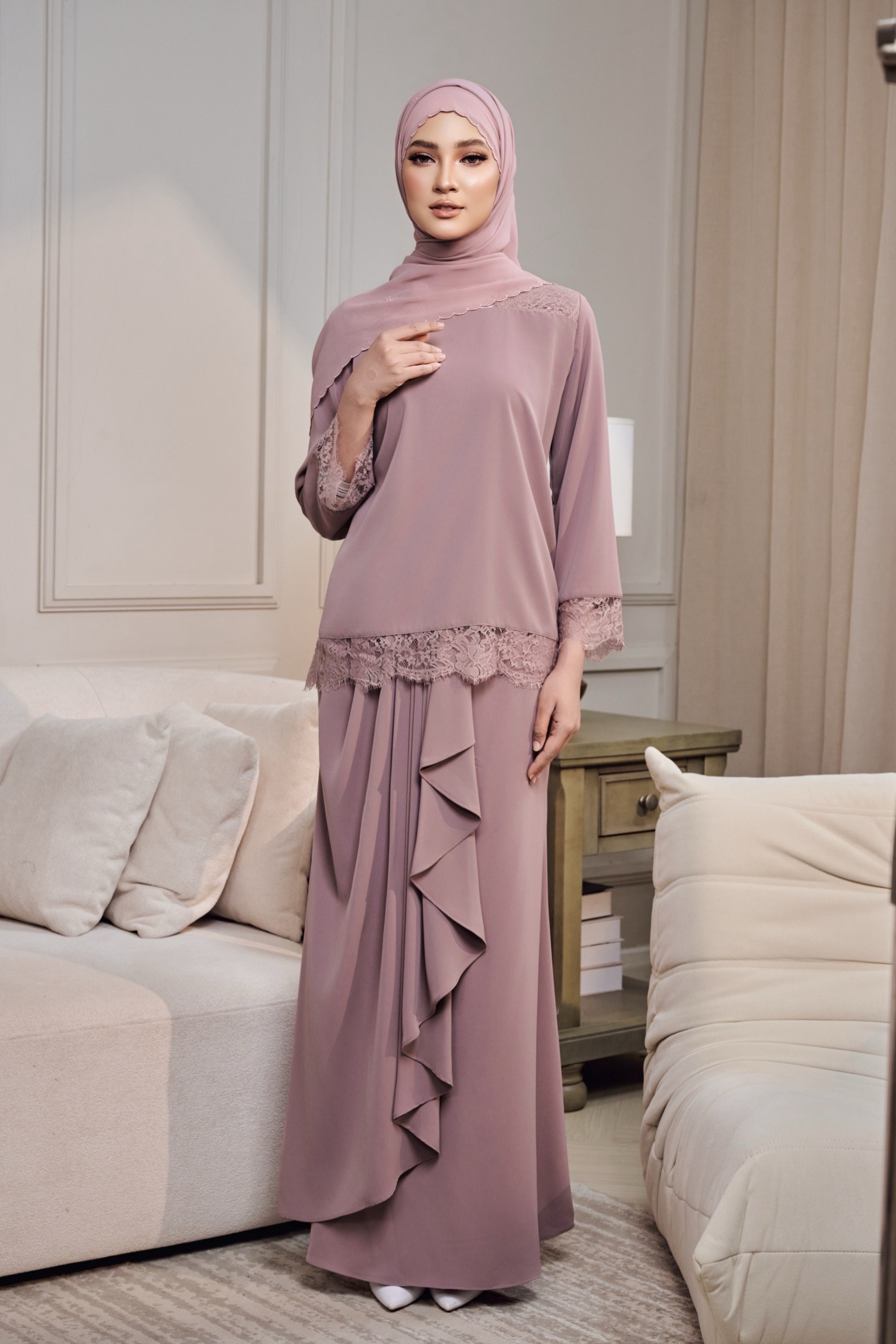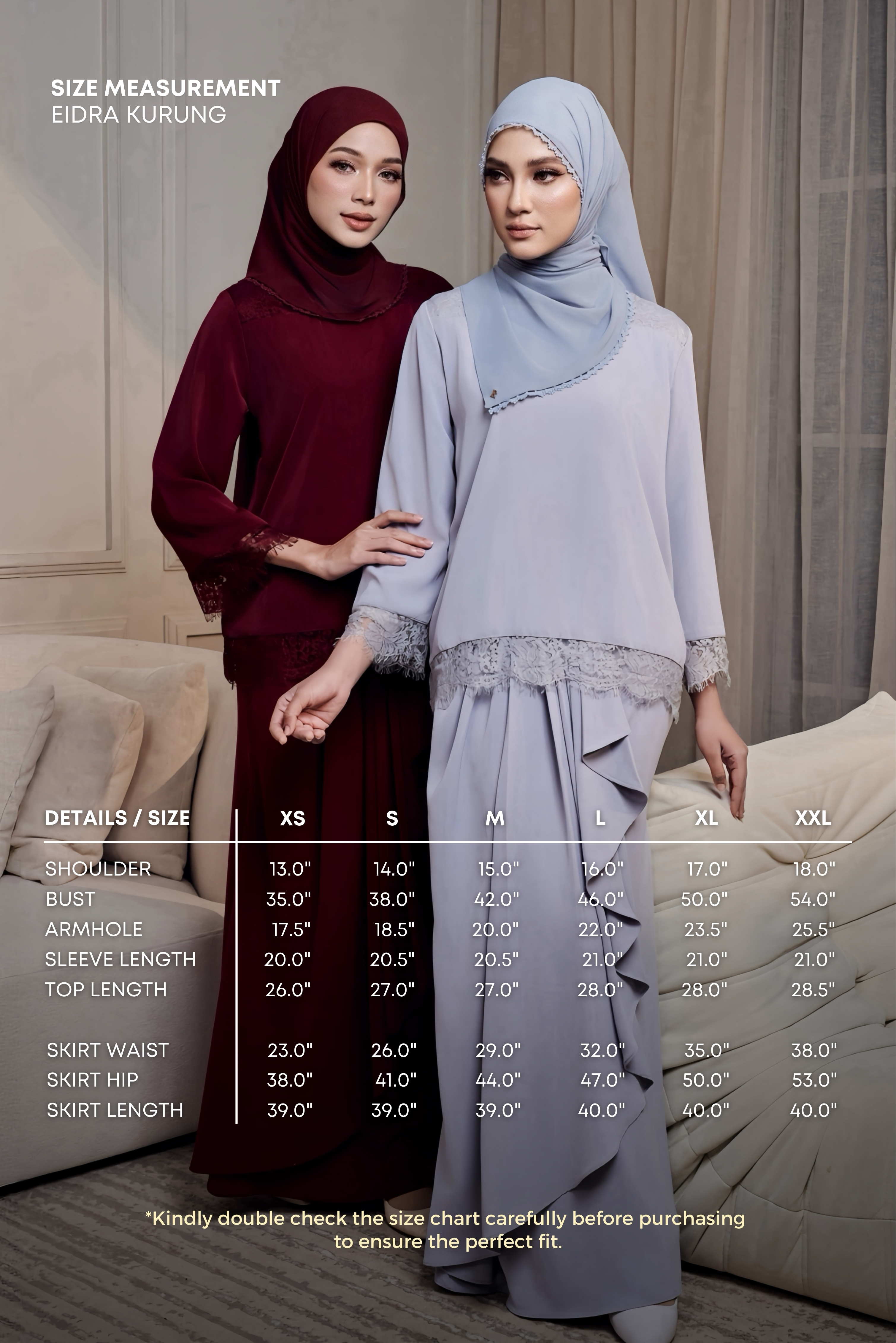 Eidra Kurung direka untuk wanita yang gemarkan gaya simple dan timeless. Dihasilkan dengan potongan moden yang kemas, diserlahkan dengan sentuhan French lace lembut di bahagian bahu, lengan dan bawah baju sebagai perincian yang elegan tanpa berlebihan.