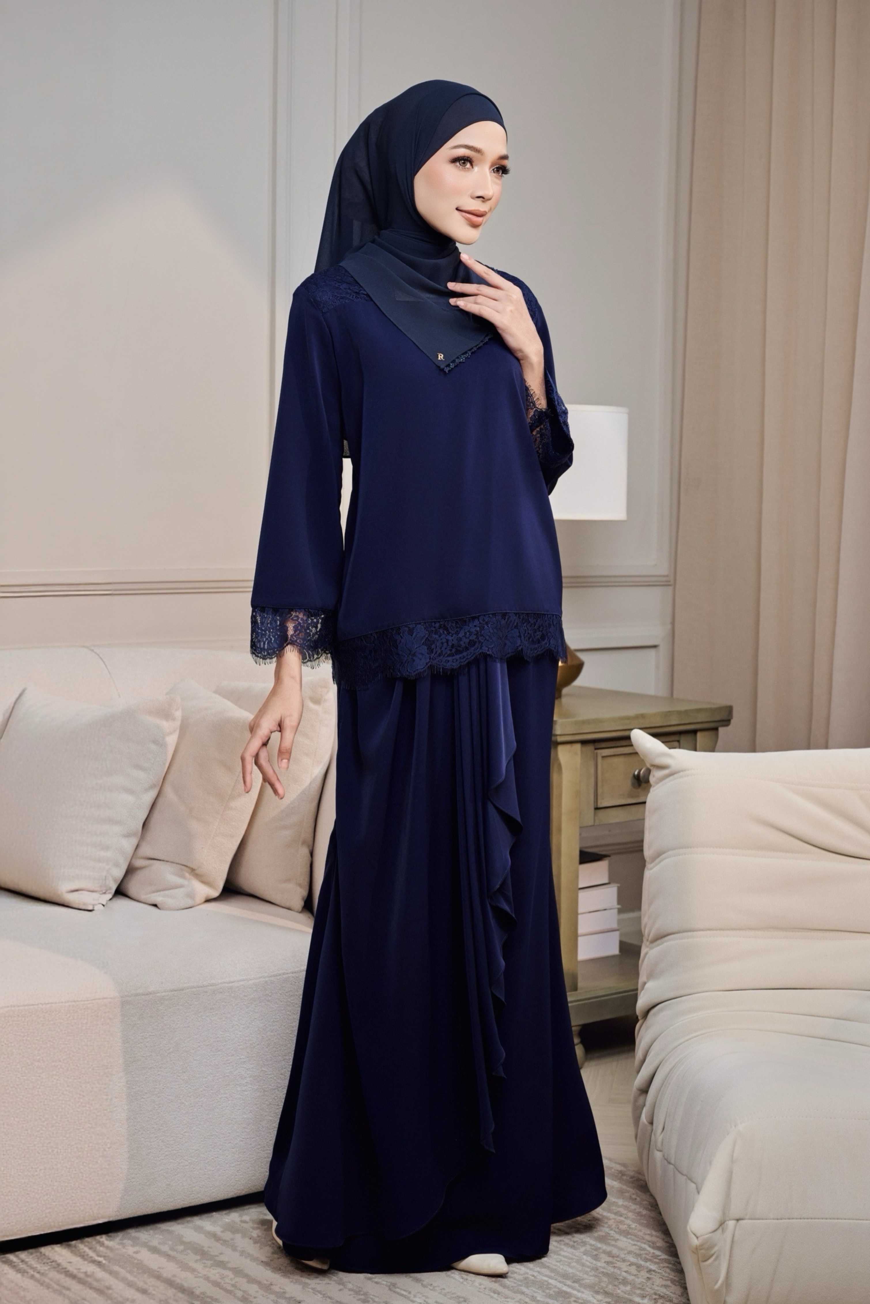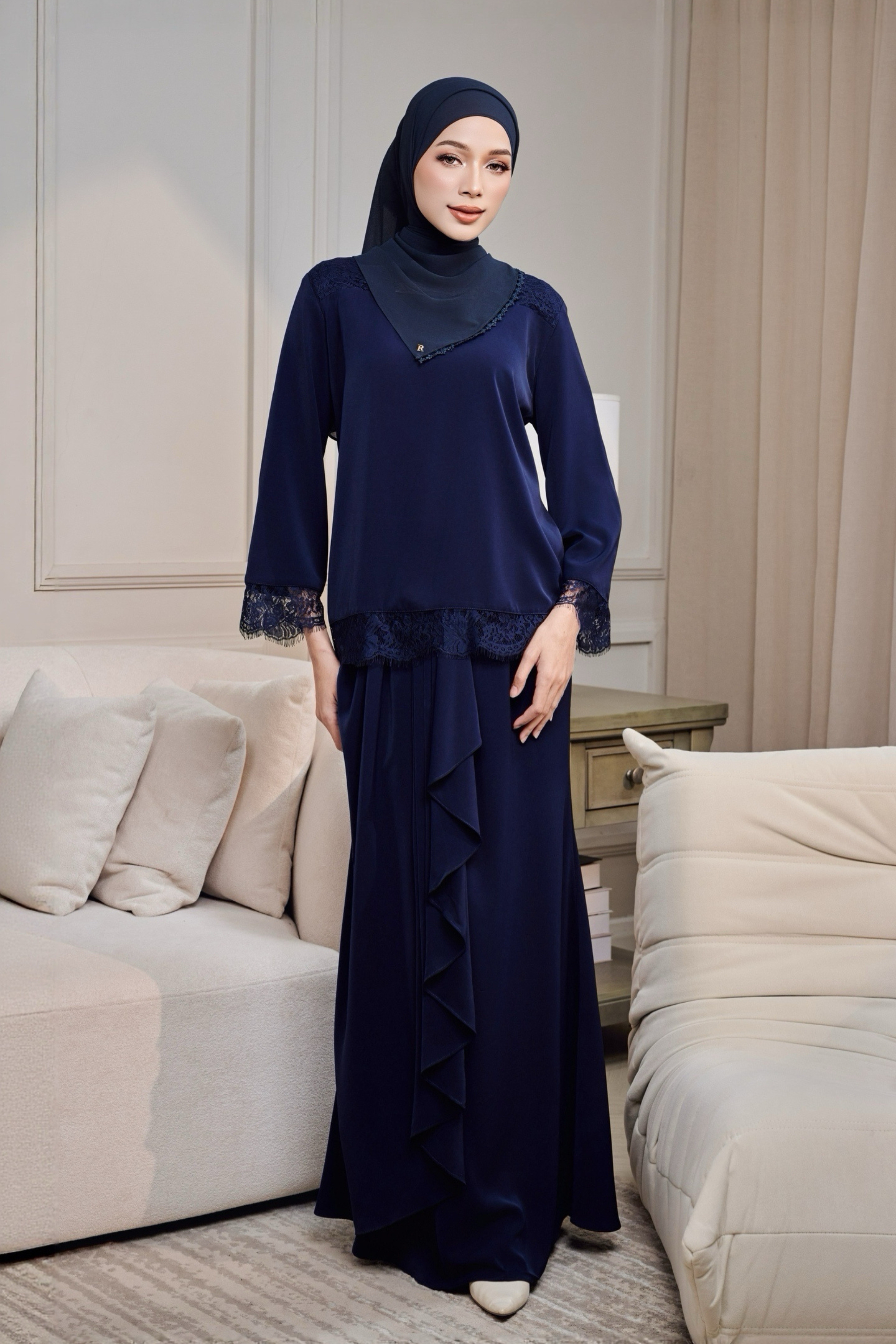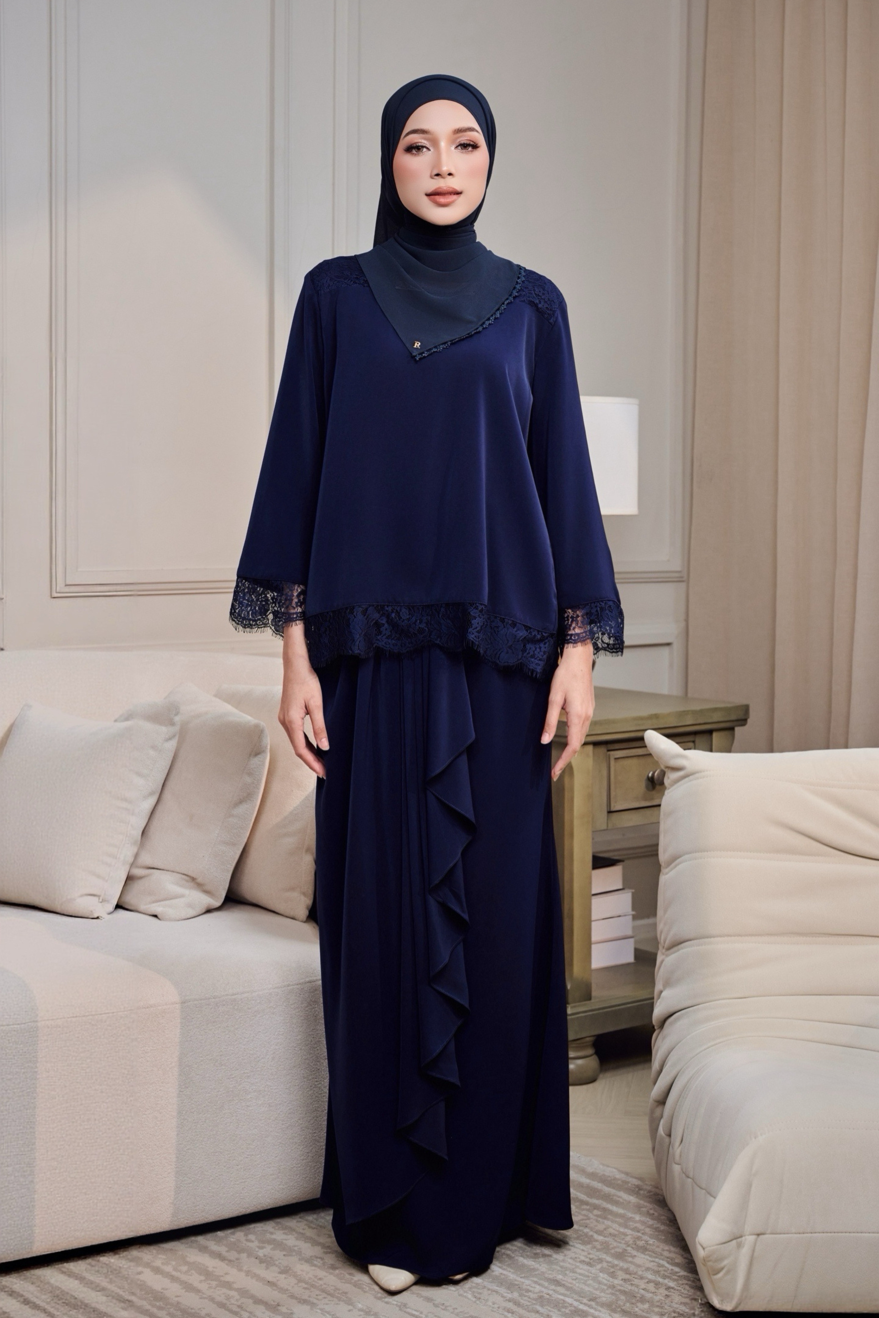 Eidra Kurung direka untuk wanita yang gemarkan gaya simple dan timeless. Dihasilkan dengan potongan moden yang kemas, diserlahkan dengan sentuhan French lace lembut di bahagian bahu, lengan dan bawah baju sebagai perincian yang elegan tanpa berlebihan.