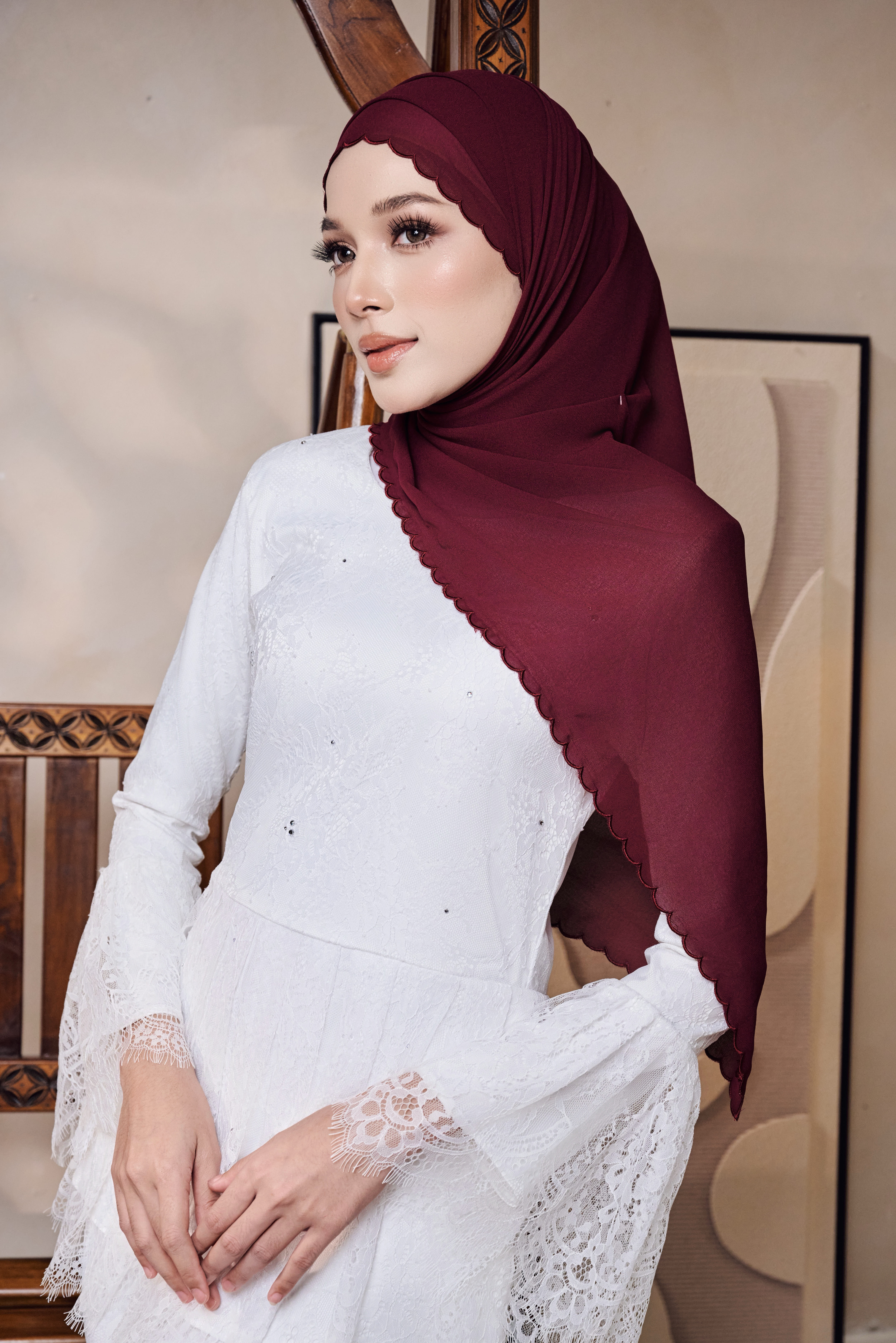 Kaseh Shawl Sulam in Burgundy