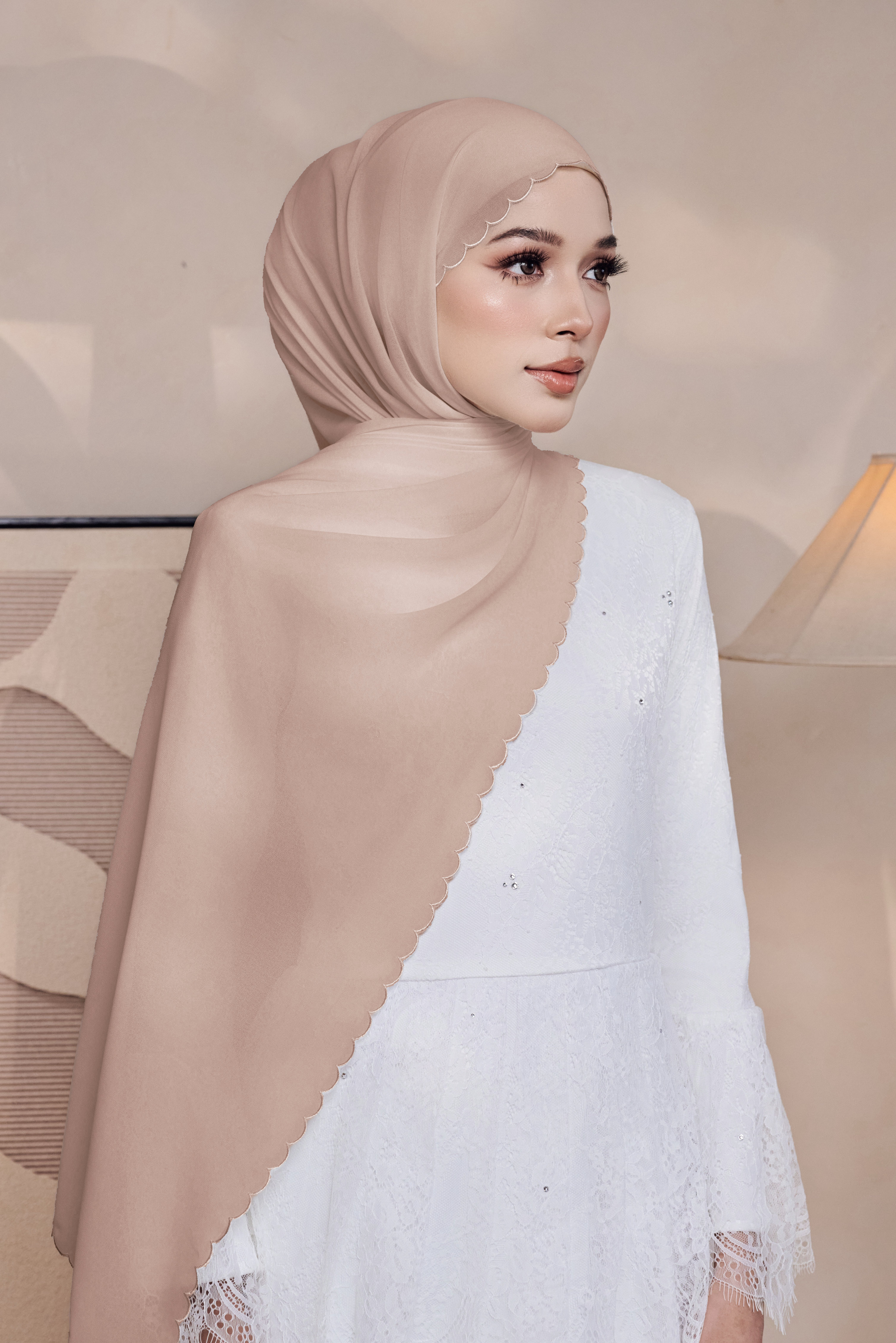 Rekaannya jatuh cantik, mudah dibentuk dan memberi efek flowy yang elegan tanpa nampak berat. Sesuai digayakan sebagai selendang bahu menambahkan effect anggun dan minimalist !