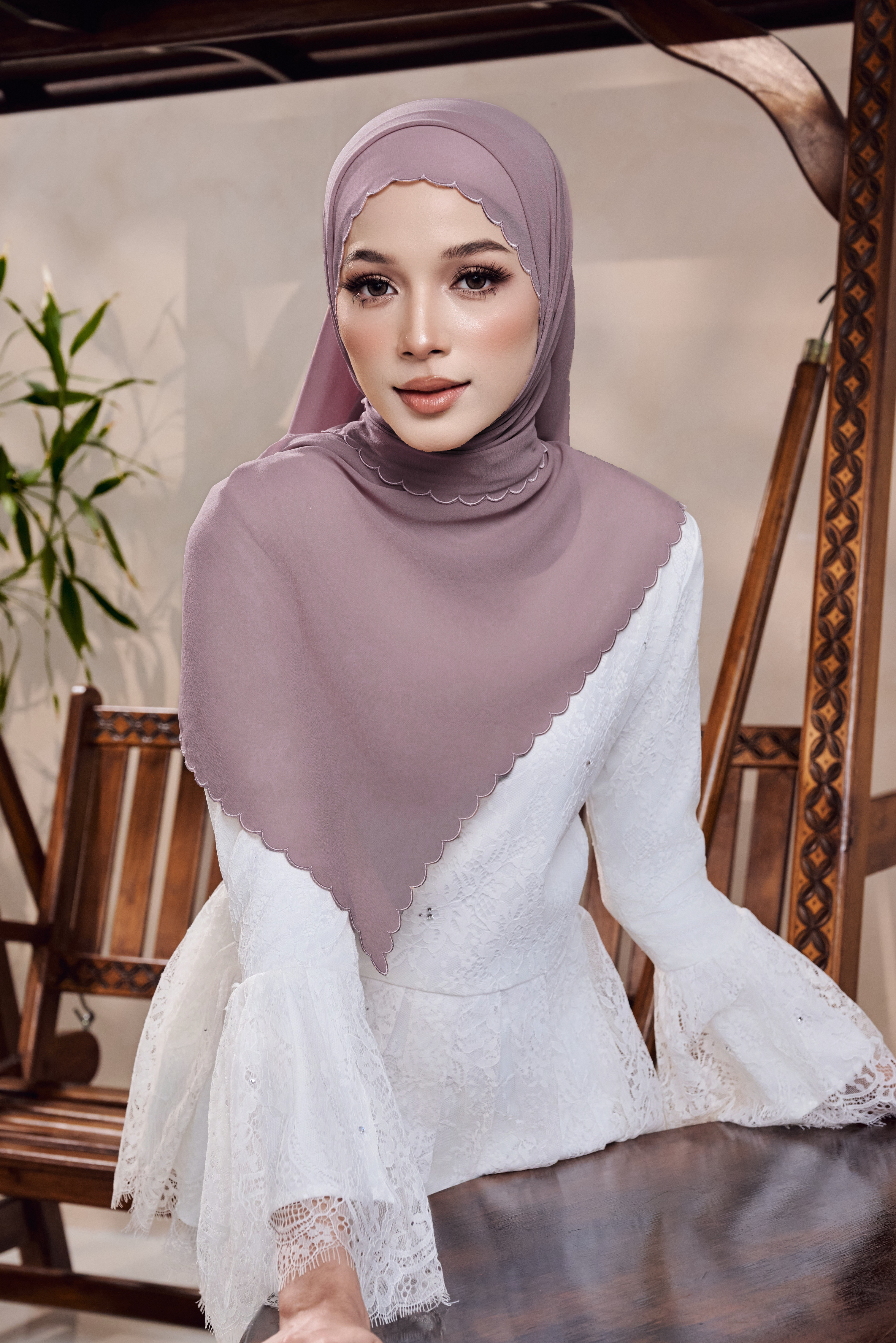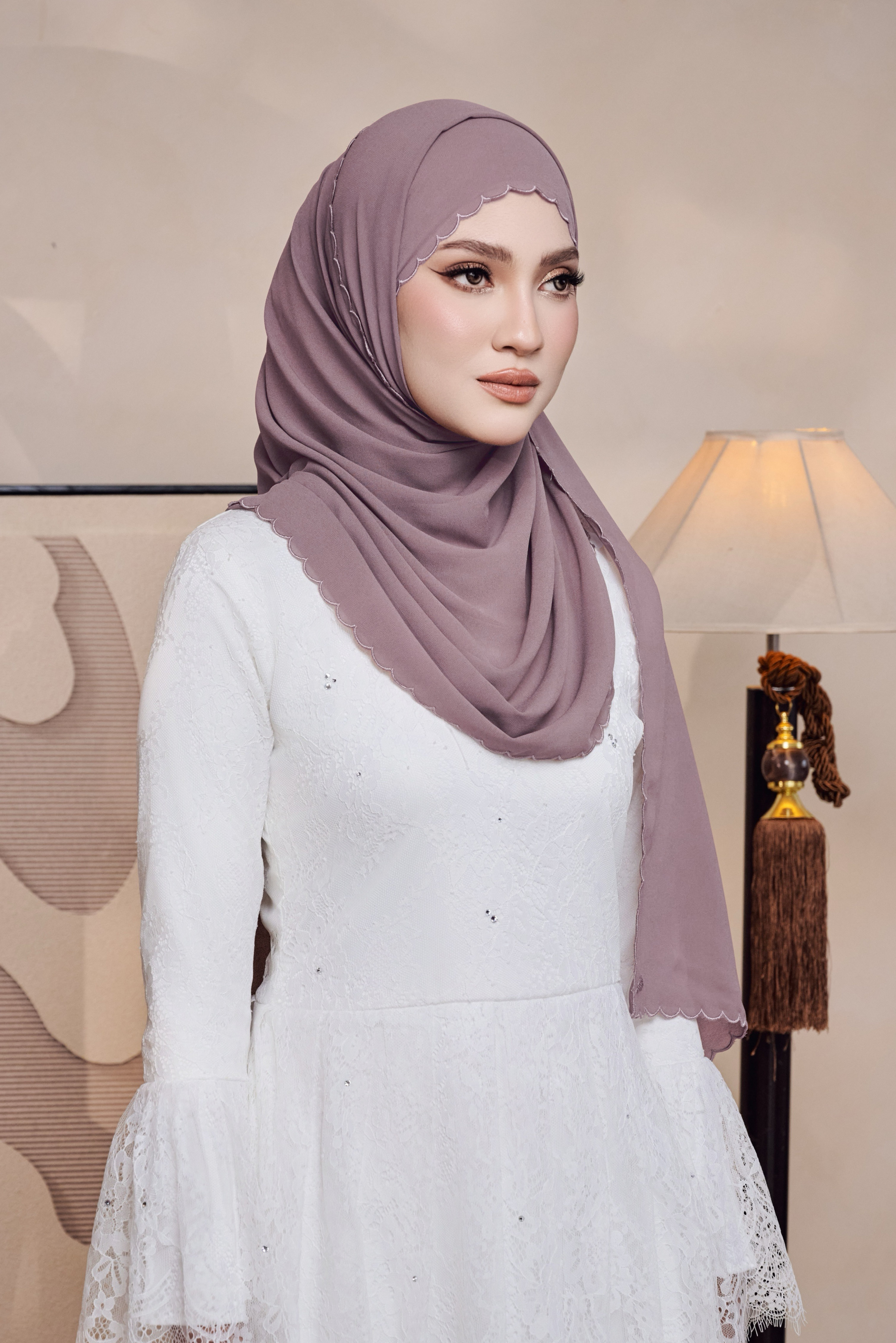 Shawl Sulam Kaseh tampil dengan sentuhan sulaman halus di bahagian tepi untuk aura feminin yang manis dan eksklusif.