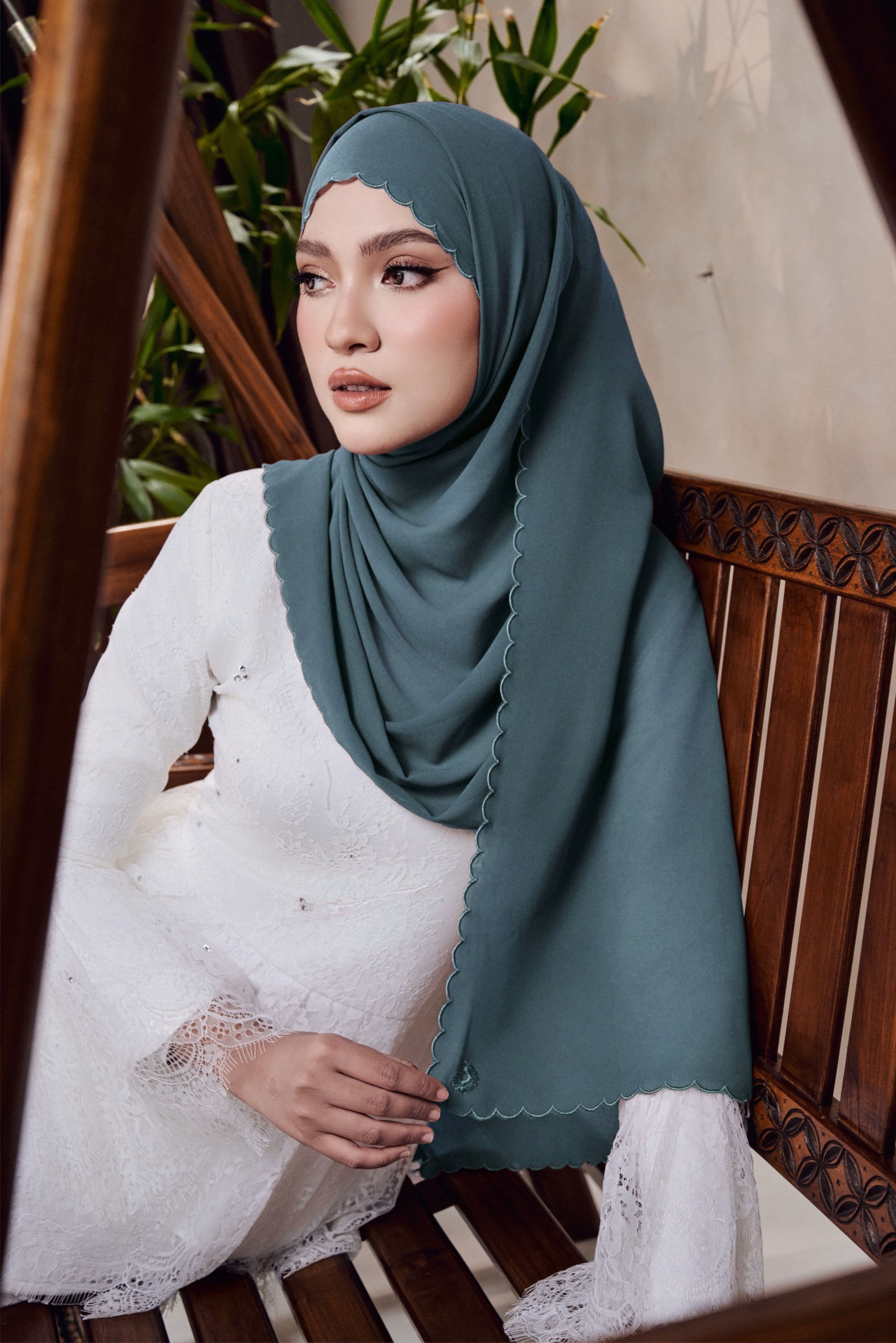 Shawl Sulam Kaseh tampil dengan sentuhan sulaman halus di bahagian tepi untuk aura feminin yang manis dan eksklusif.