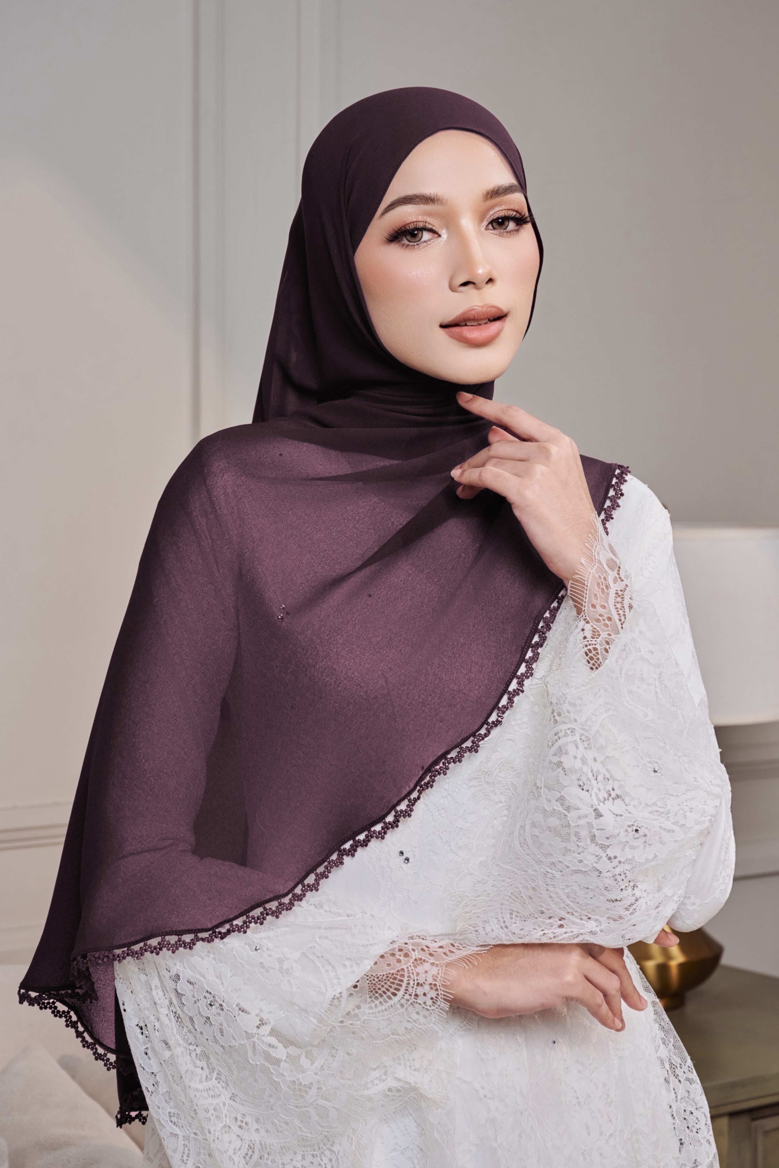 Lembut, anggun dan penuh pesona – Mulya Shawl Halfmoon Lace direka untuk wanita yang menginginkan gaya yang elegan namun effortless.