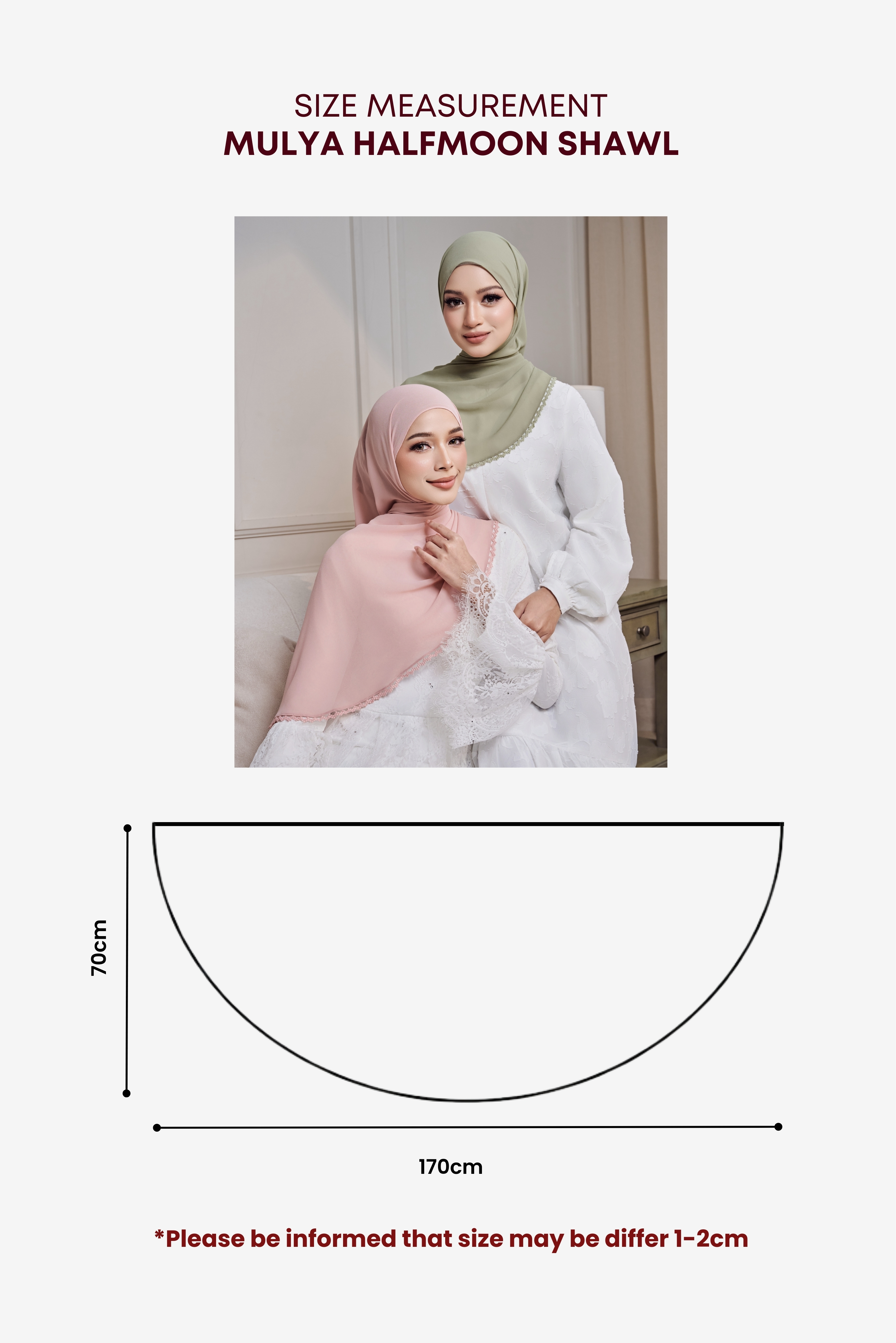Lembut, anggun dan penuh pesona – Mulya Shawl Halfmoon Lace direka untuk wanita yang menginginkan gaya yang elegan namun effortless.