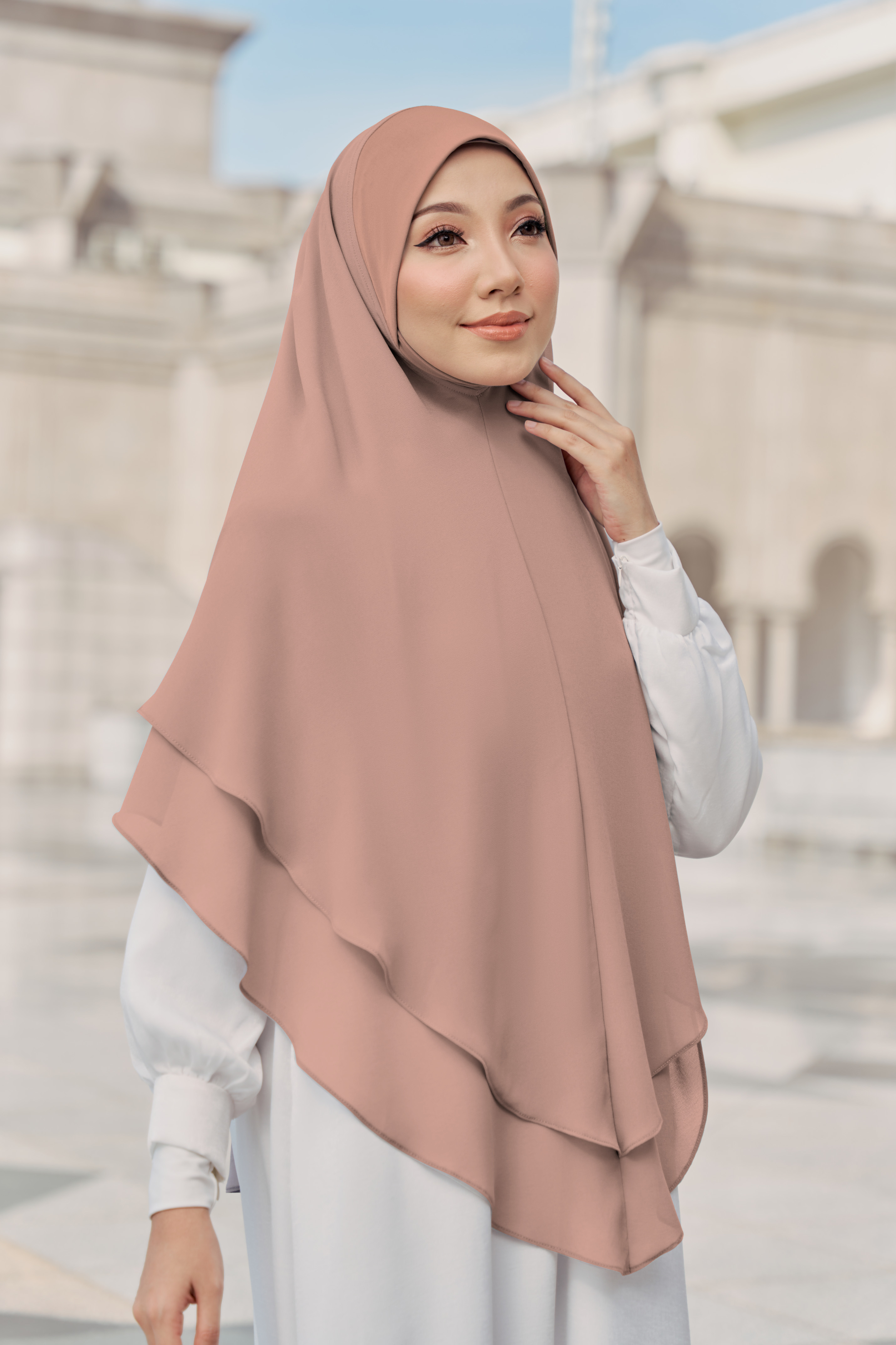 Its pinless, easy slip-on design, paired with a slim chin cover, makes it ideal for Umrah or solat. The Nageena Khimar combines practicality and style, ensuring you look and feel your best.