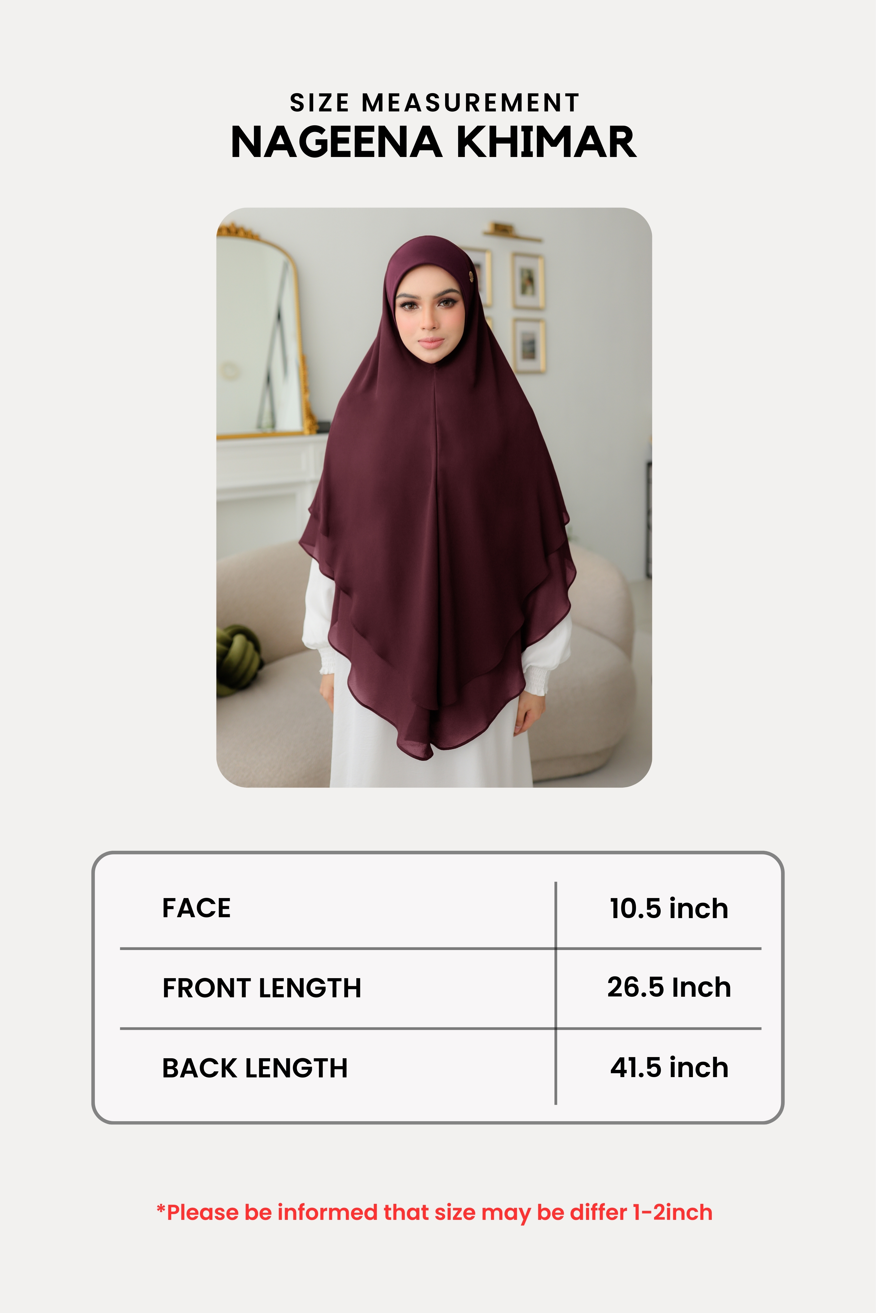 Its pinless, easy slip-on design, paired with a slim chin cover, makes it ideal for Umrah or solat. The Nageena Khimar combines practicality and style, ensuring you look and feel your best.
