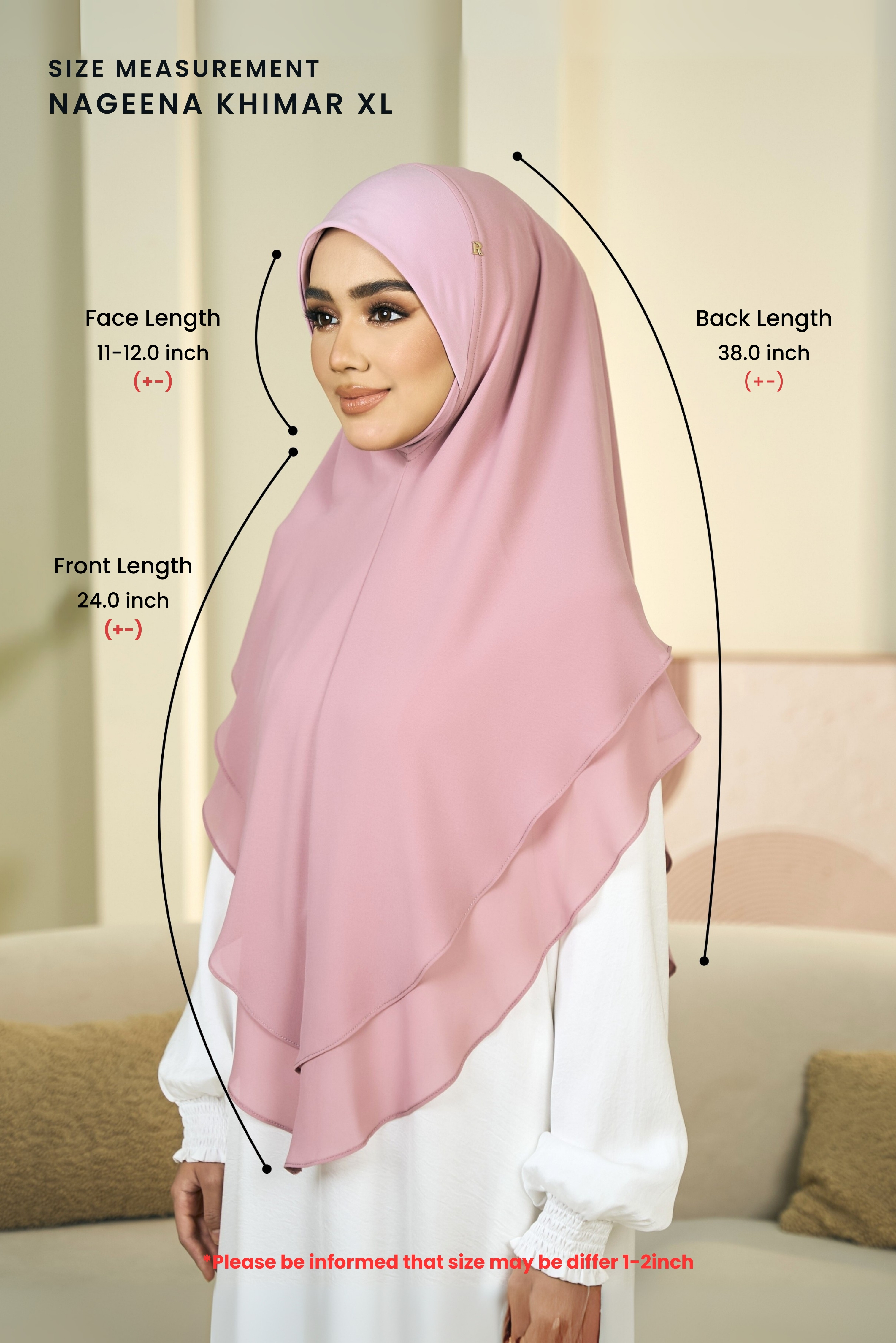 Its pinless, easy slip-on design, paired with a slim chin cover, makes it ideal for Umrah or solat. The Nageena Khimar XL combines practicality and style, ensuring you look and feel your best.