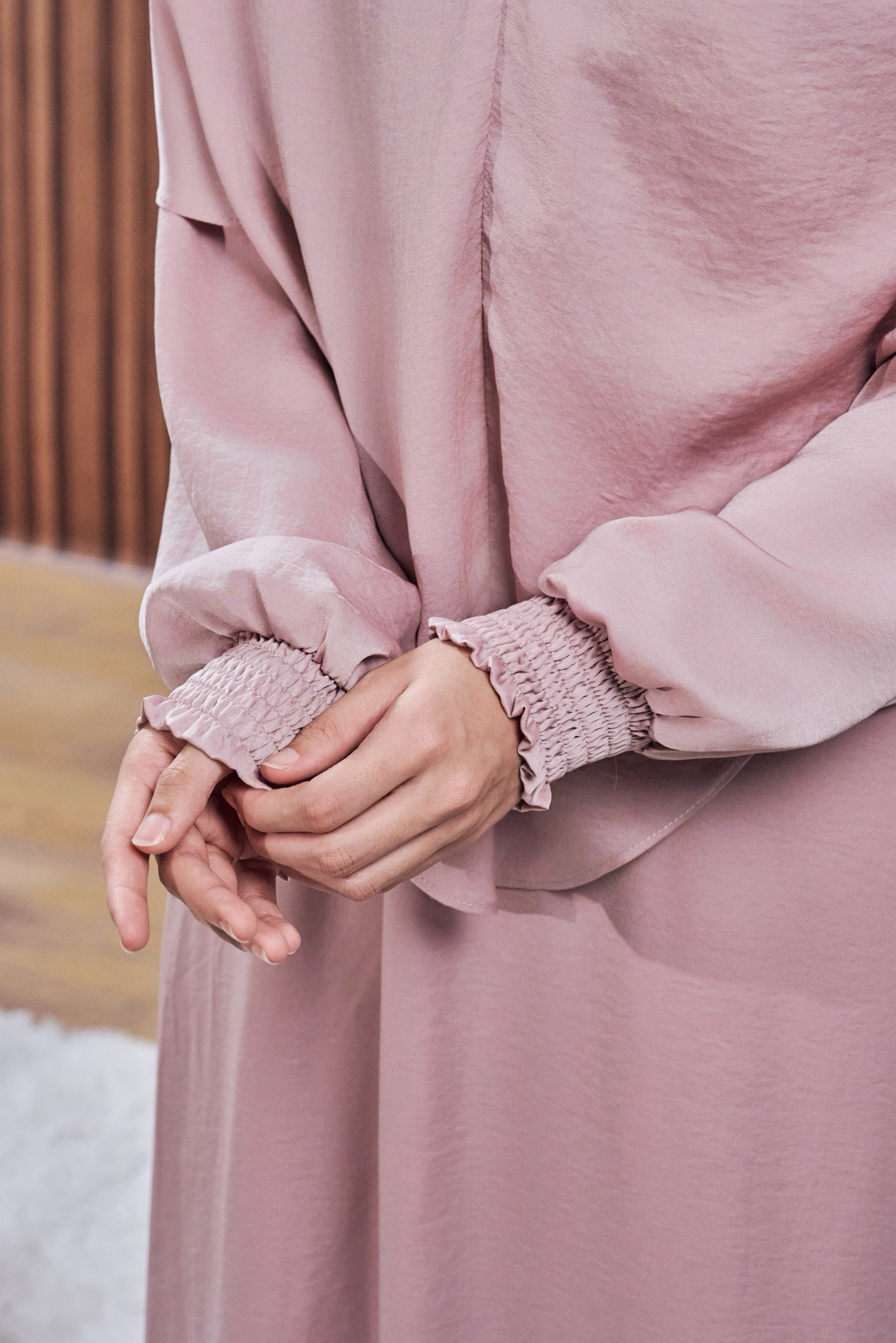 ✔ Smocked cuff eksklusif — perincian halus yang menaikkan seri