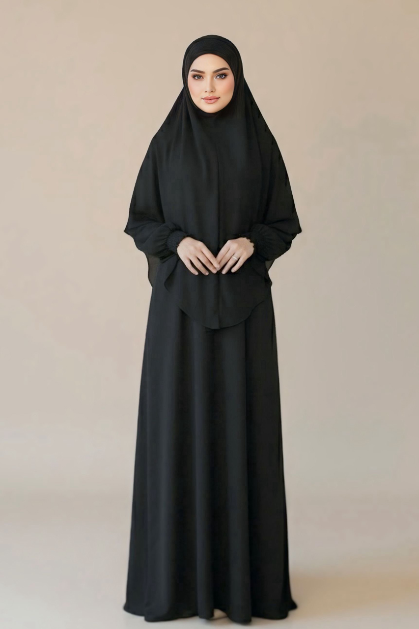 2 in 1 Lengkap! Dapat French Khimar & Jubah A-Cut terus dalam satu set – tak perlu pening nak mix & match lagi!