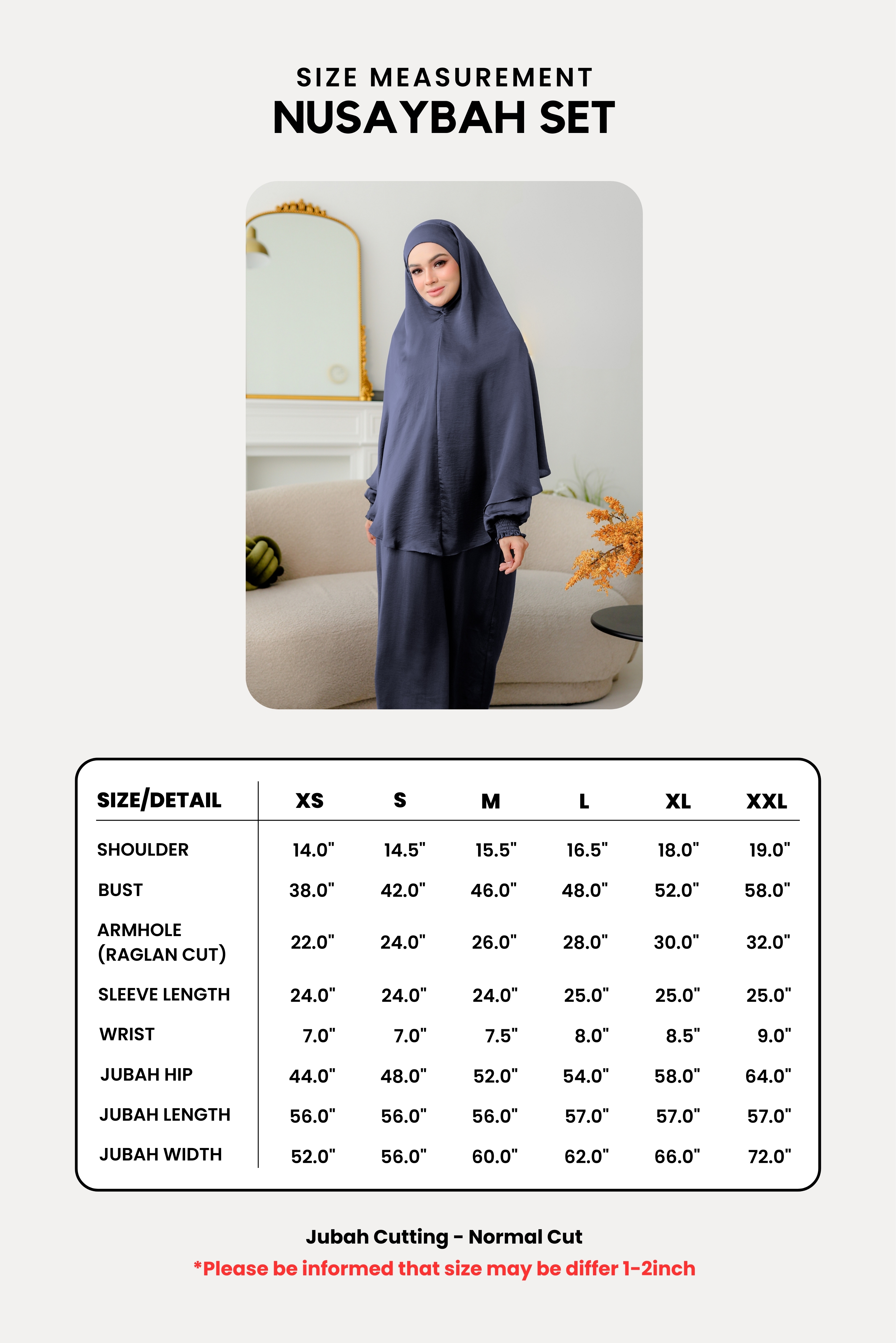 Baru tiba! Nusaybah Set hadir dengan padanan lengkap French Khimar + Jubah A-Cut yang direka mewah & praktikal untuk wanita moden yang mementingkan gaya sopan, flowy & effortless elegan!