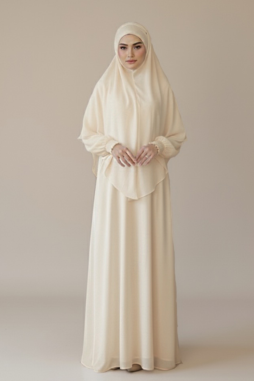2 in 1 Lengkap! Dapat French Khimar & Jubah A-Cut terus dalam satu set – tak perlu pening nak mix & match lagi!