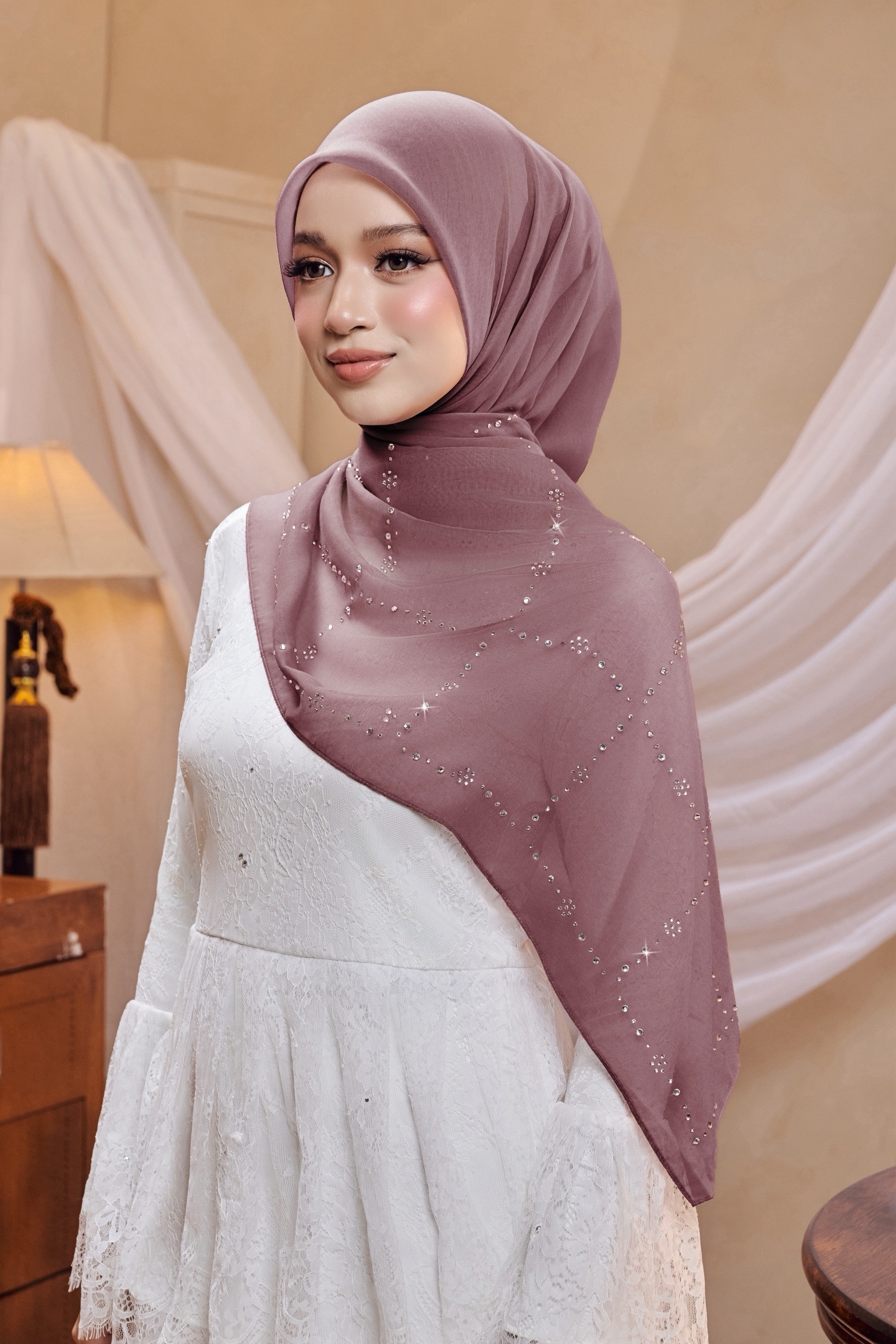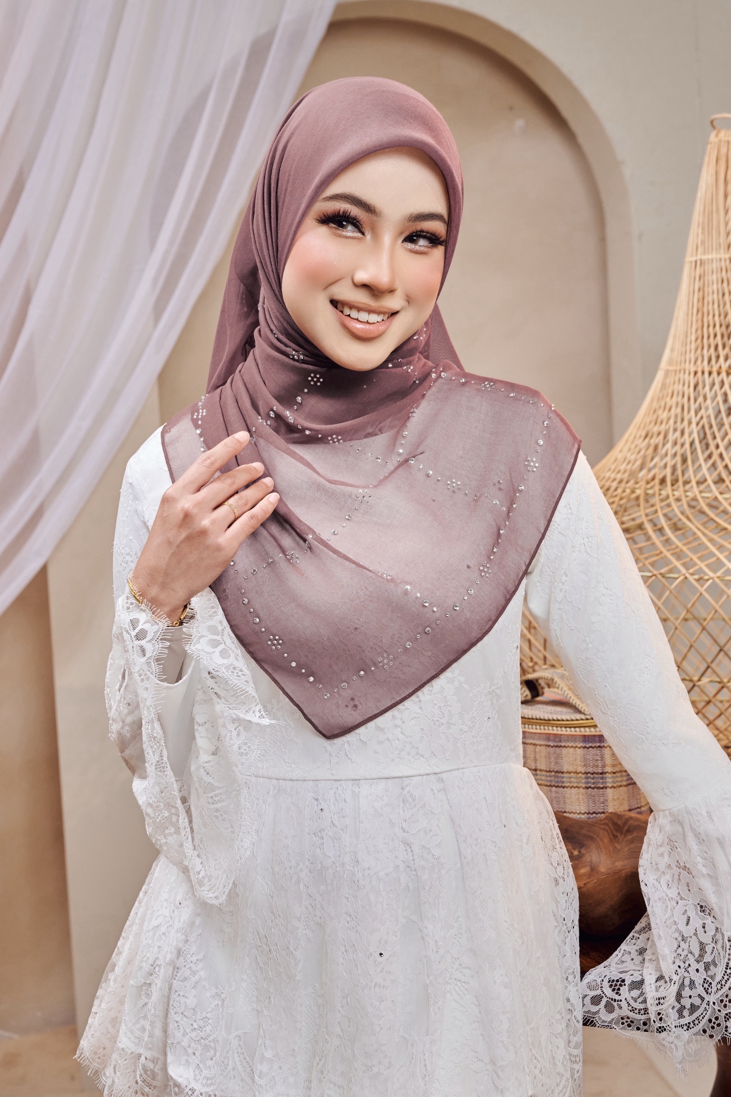Perincian batu hotfix halus memberikan kilauan lembut yang menaikkan seri tanpa nampak berlebihan. Ditambah dengan jahitan baby seam, kemasan bawal kelihatan lebih kemas dan eksklusif.