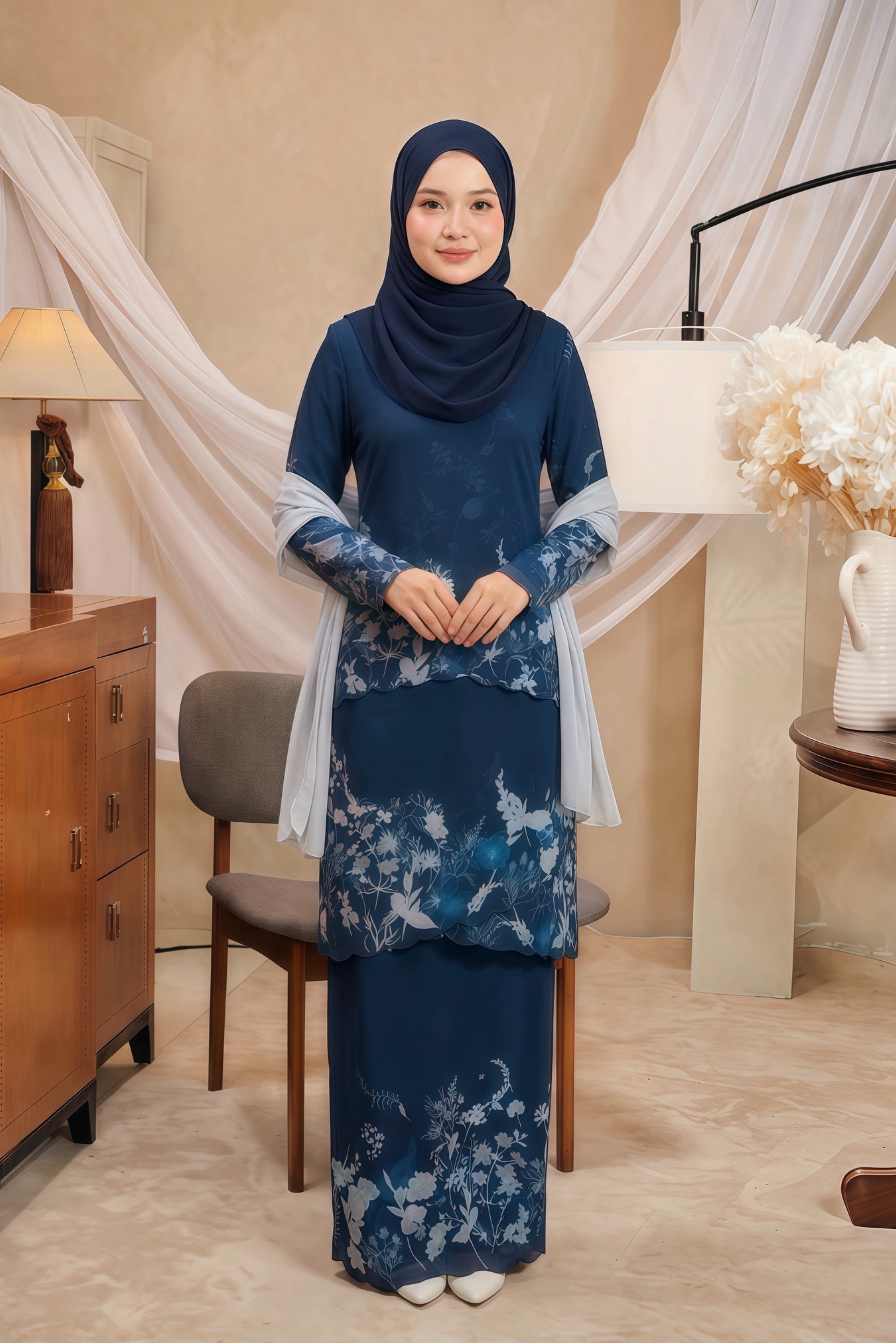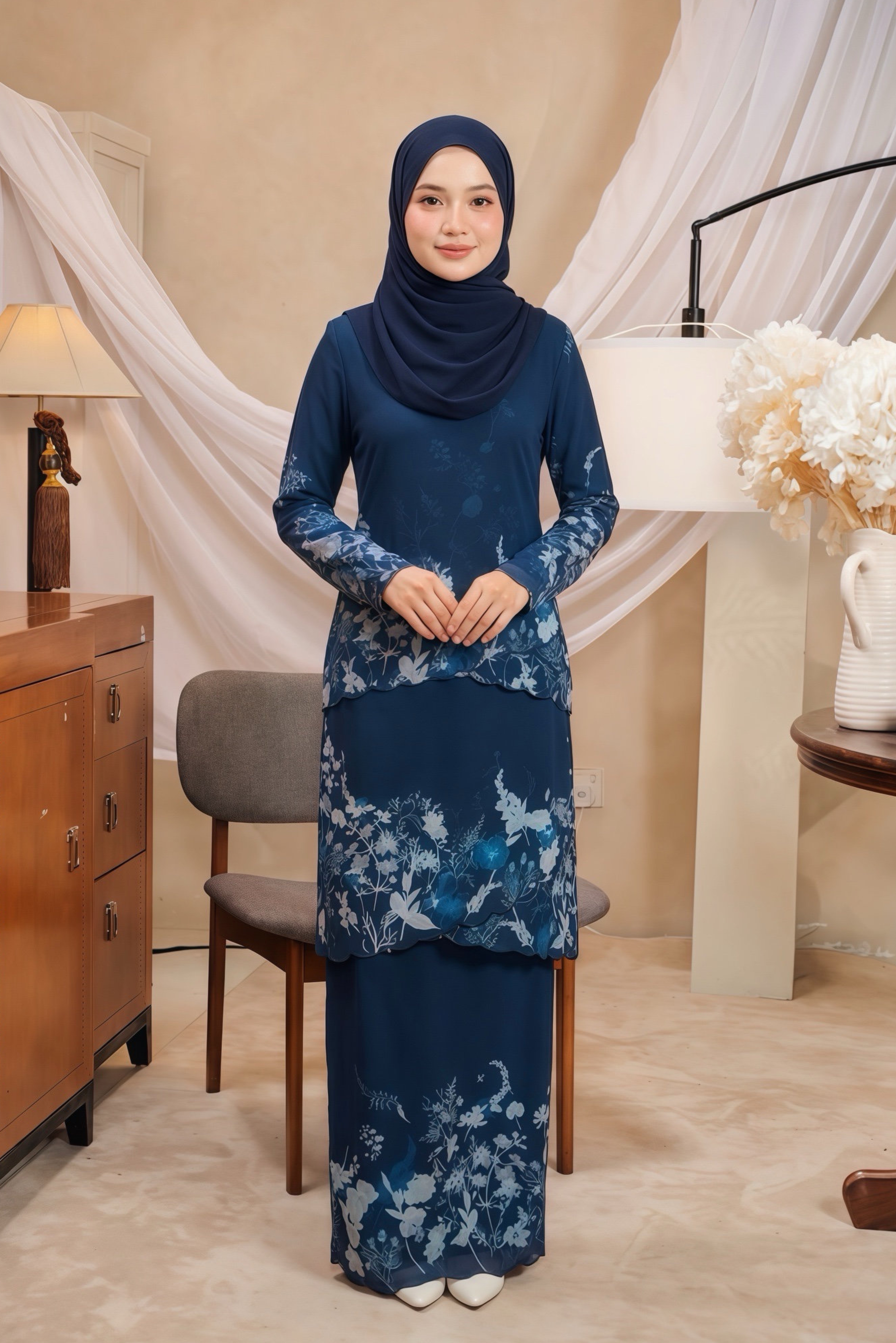 A luxuriously redefined kurung silhouette—where tradition meets sophistication