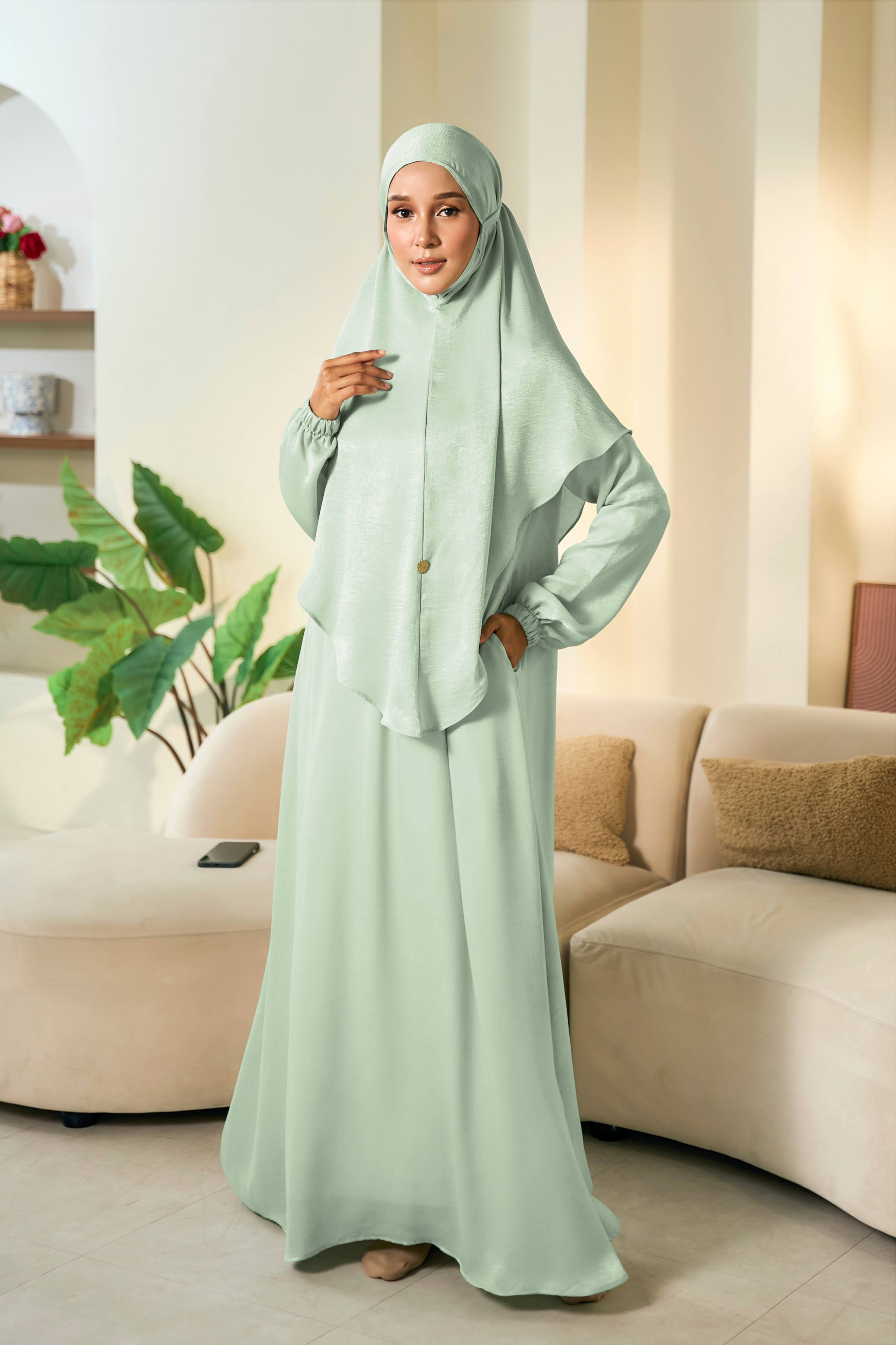 Introducing our Zaria Set for your umrah outfit. Crafted with lightweight premium velvety fabric. It is easy to iron and available in seven pretty colours.