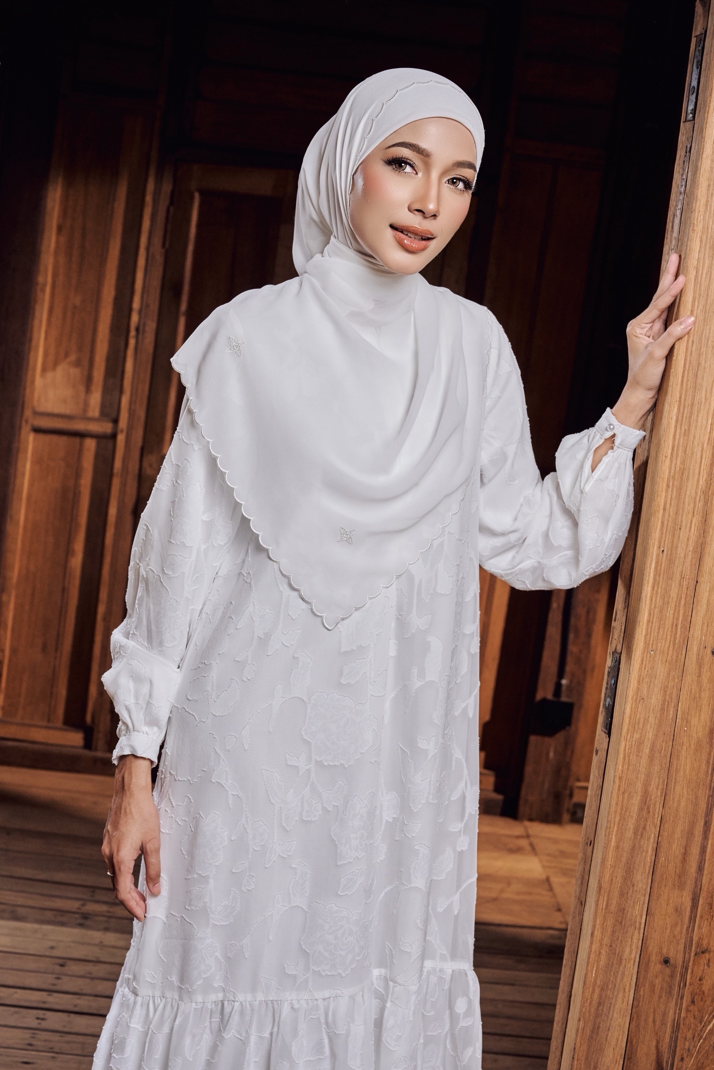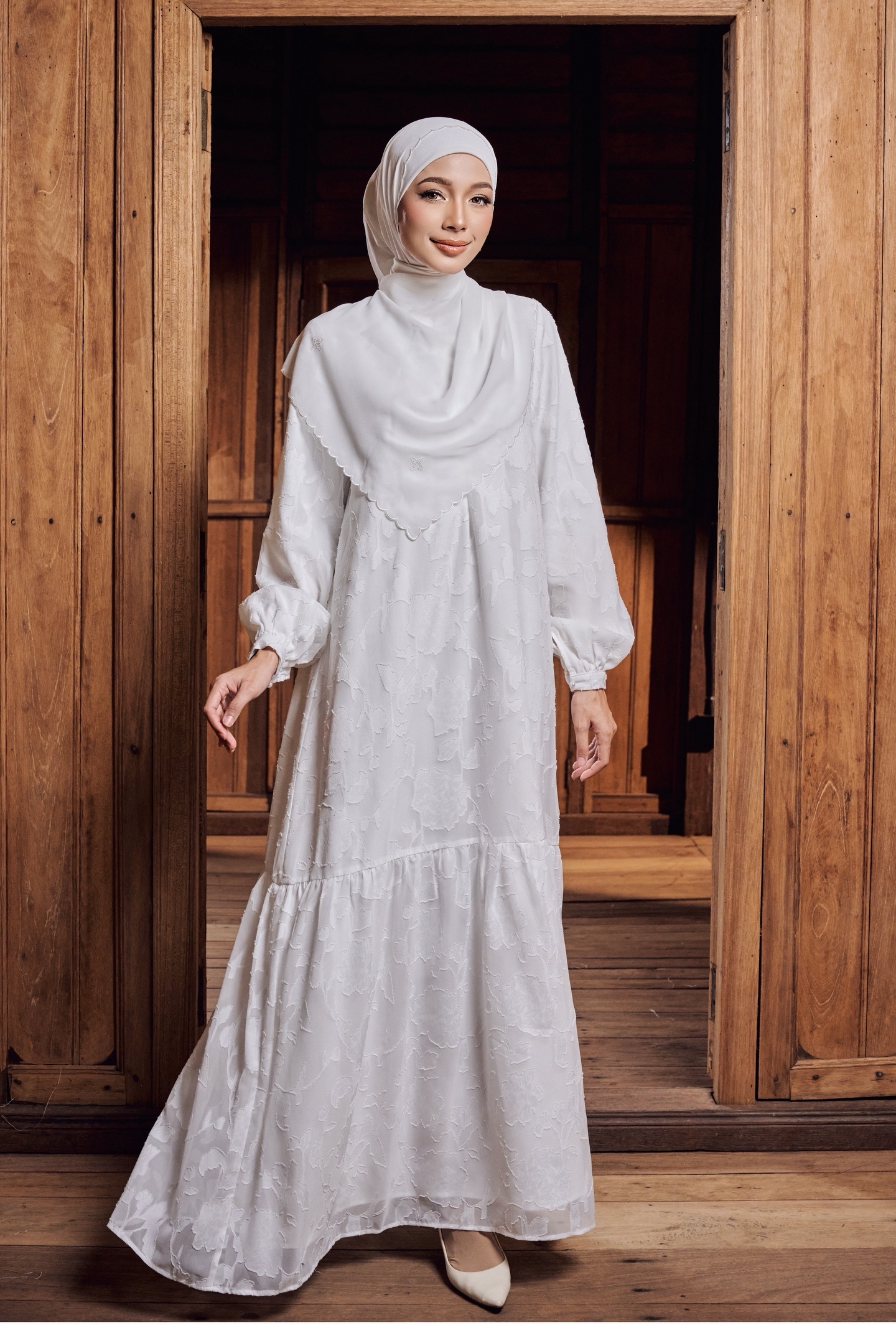 Flows effortlessly with every movement offering full modest coverage while maintaining a soft, feminine elegance. Light, airy and comfortable, it is made to accompany you through serene Tarawih nights, intimate iftar gatherings, and cherished Raya mornings.