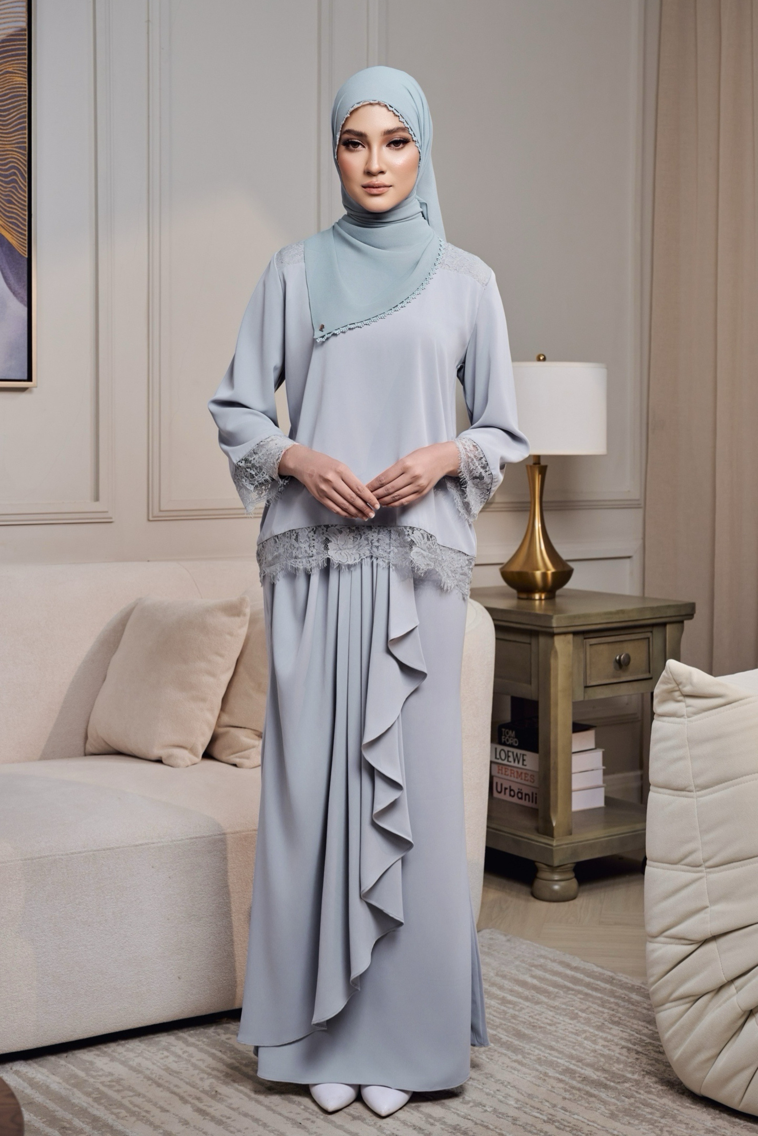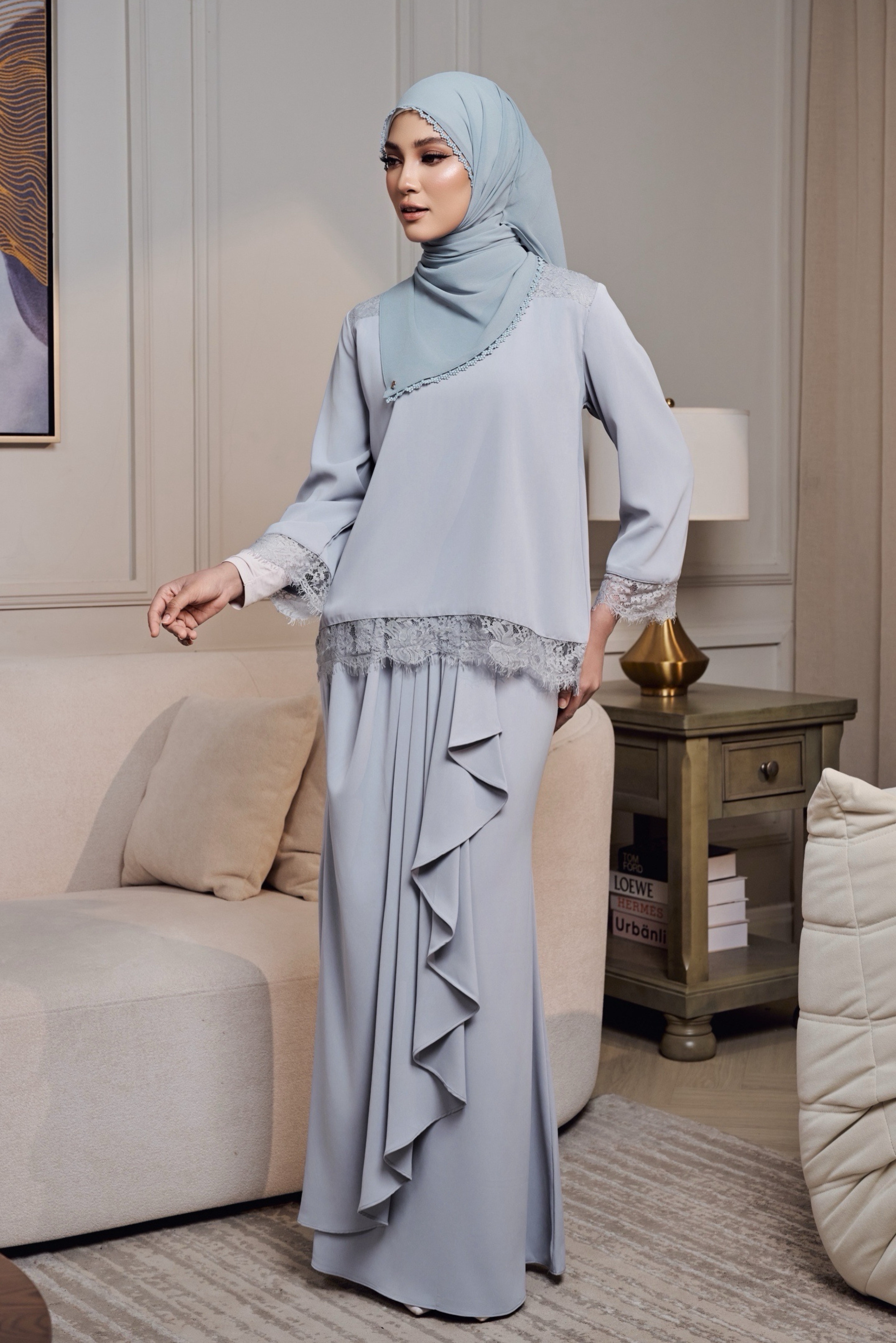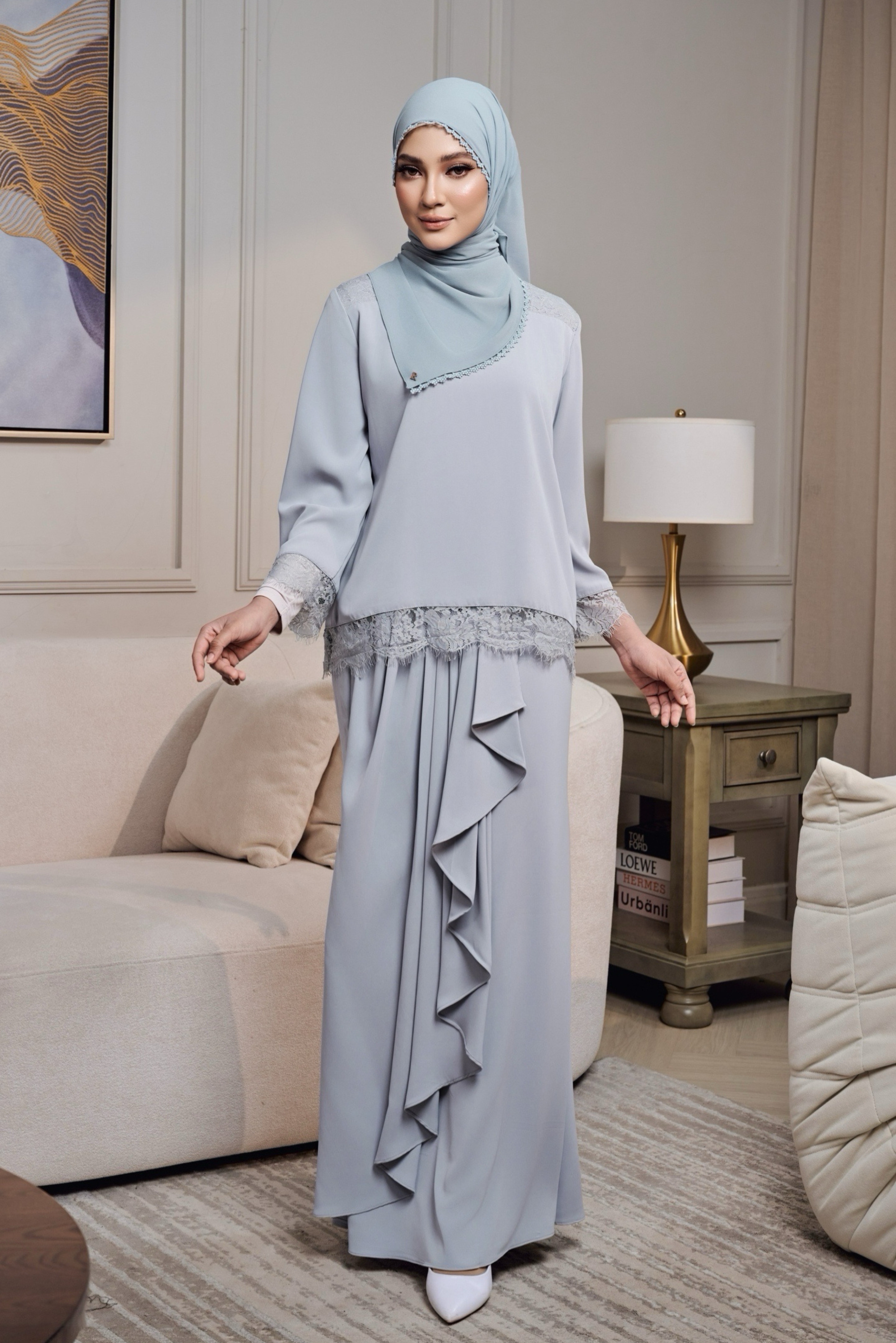 Rekaannya menampilkan kain dengan instant drape yang jatuh cantik dan memberi siluet anggun secara effortless. Sesuai untuk Raya, majlis atau dipakai semula untuk acara istimewa.