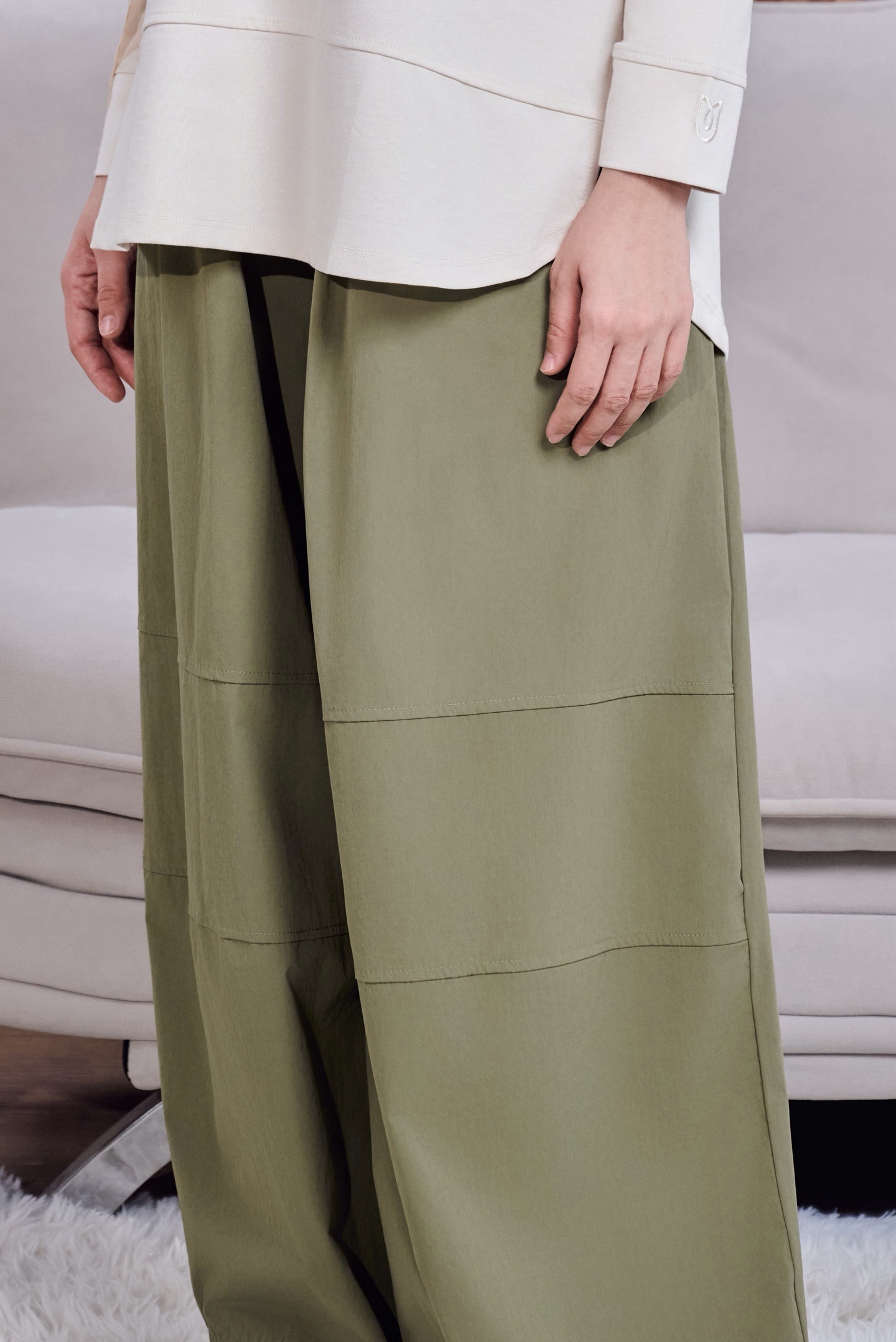 Potongan baggy yang loose & flowy tetapi tetap structured memberikan pergerakan yang cantik, sambil mengekalkan look yang polished dan premium — tak nampak selekeh walaupun tanpa effort.