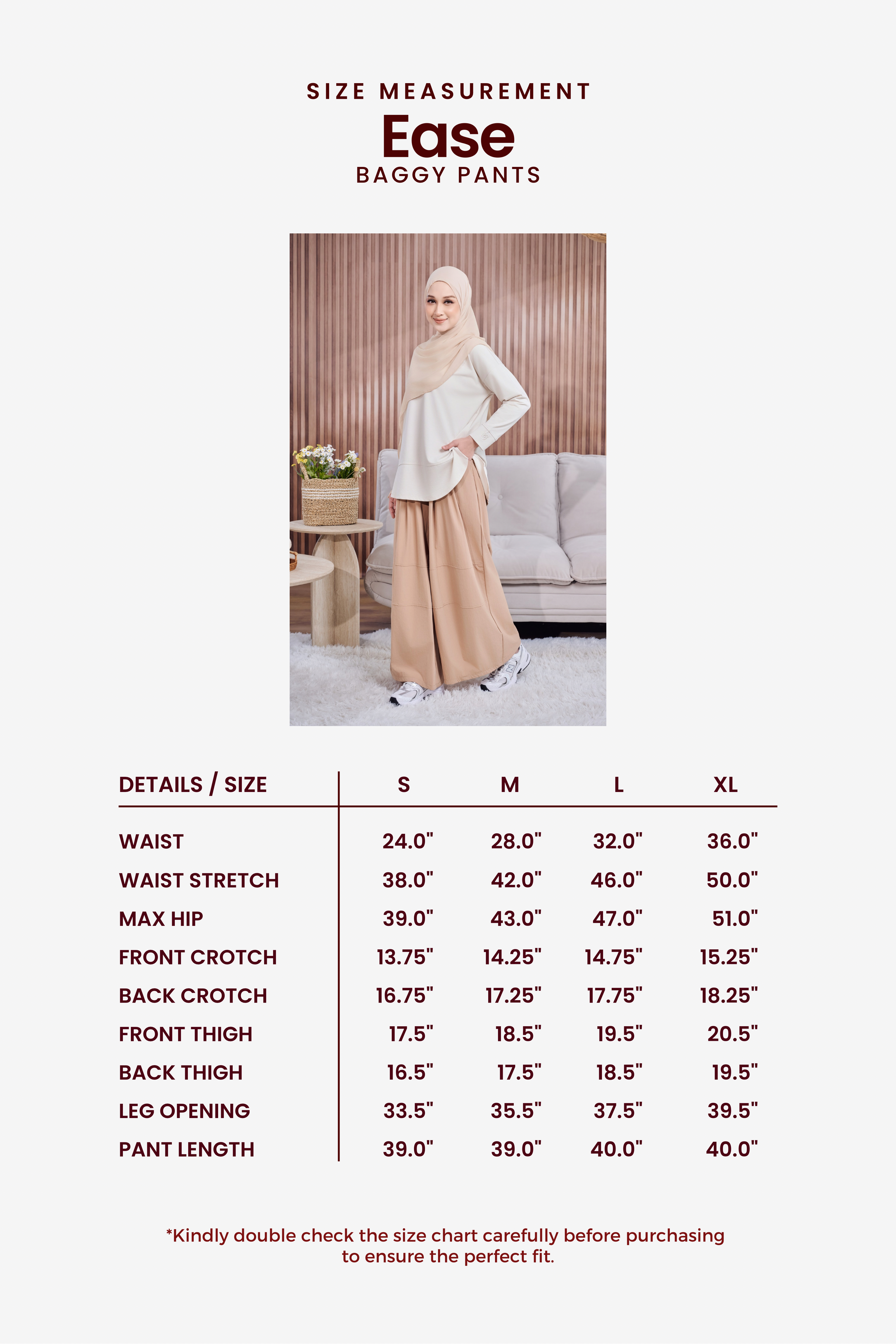 Direka untuk wanita moden yang sentiasa on-the-go, EASE Baggy Pants menggabungkan gaya dan fungsi dalam satu siluet yang timeless.