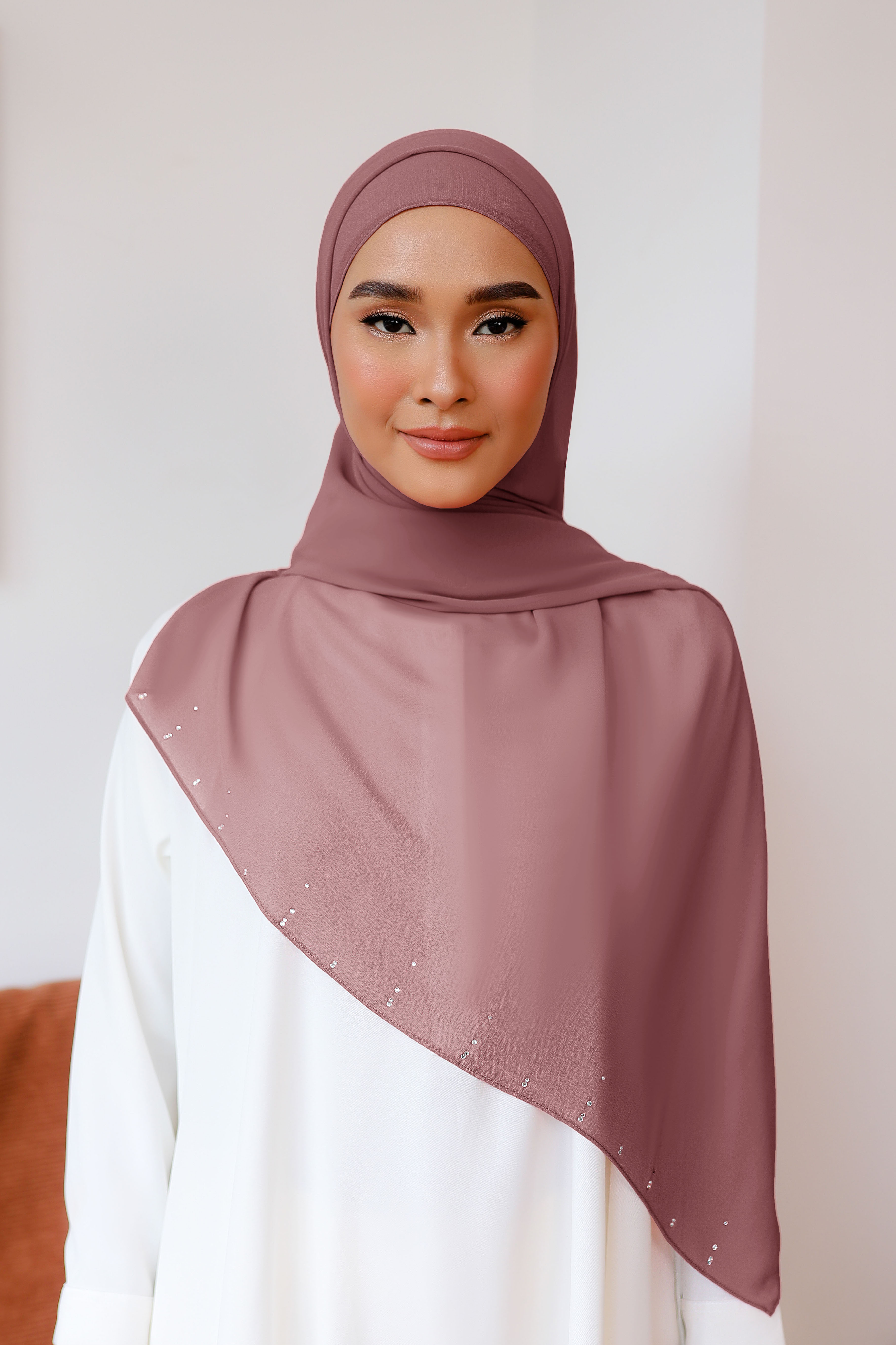 This elegant Pearl Chiffon shawl features Hotfix Diamonds on both sides, adding a subtle touch of sparkle for a luxurious look. The soft and lightweight material ensures comfort throughout the day, while its non-slippery texture makes it easy to style in various hijab looks. Available in a range of beautiful colors, this shawl is perfect for both special occasions and everyday wear, effortlessly enhancing your elegance and style.
